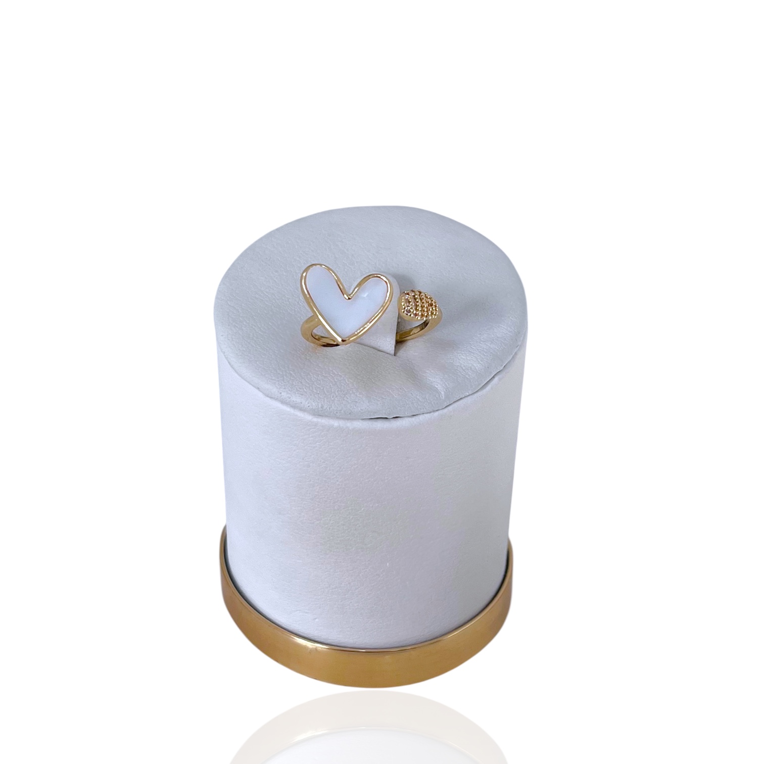 Anel Ajustável Bijuteria Dourado Coração Madrepérola Cravejada