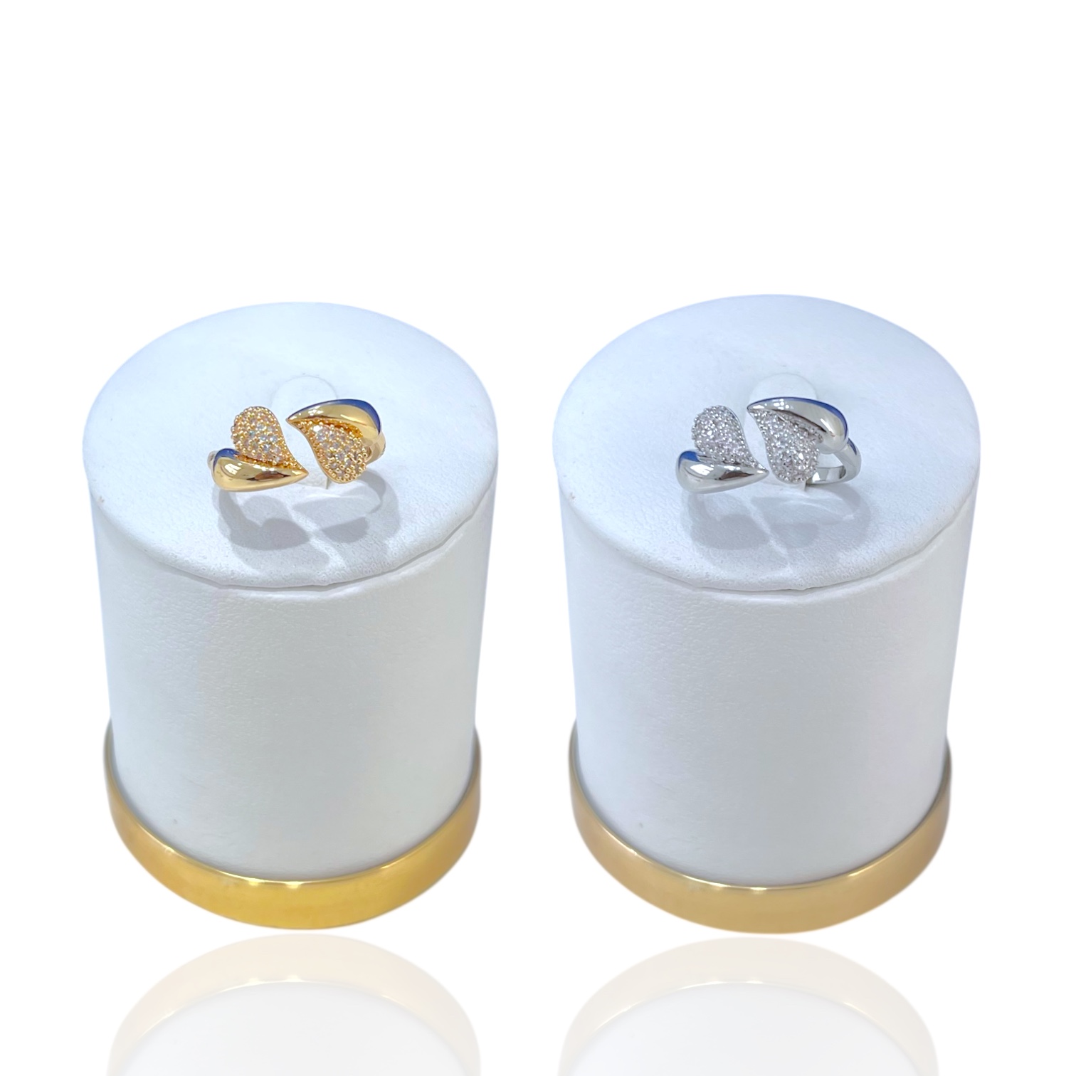 Anel Ajustável Bijuteria Dourado e Prata Corações Cravejado