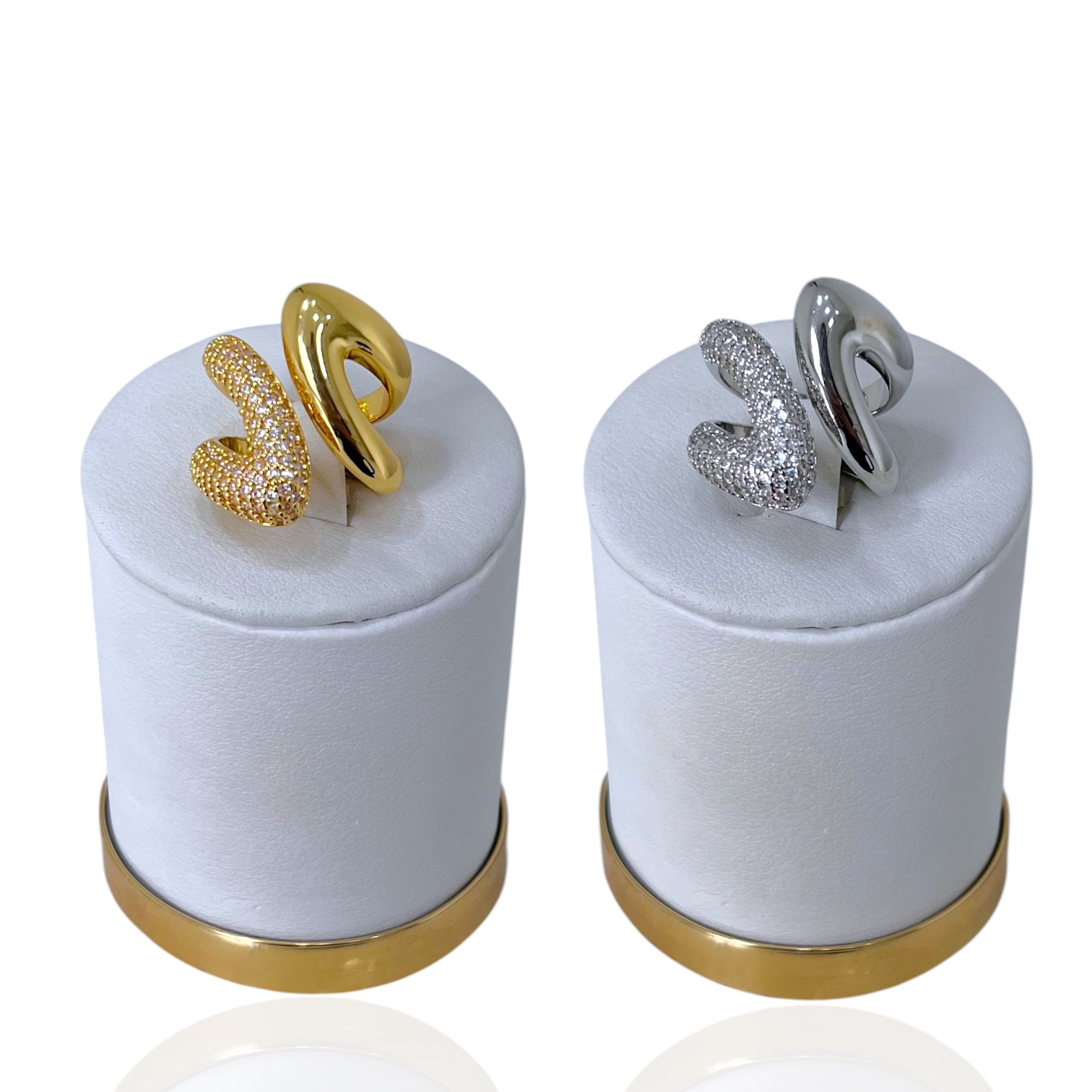 Anel Ajustável Bijuteria Dourado e Prata Duas Pontas V Cravejada