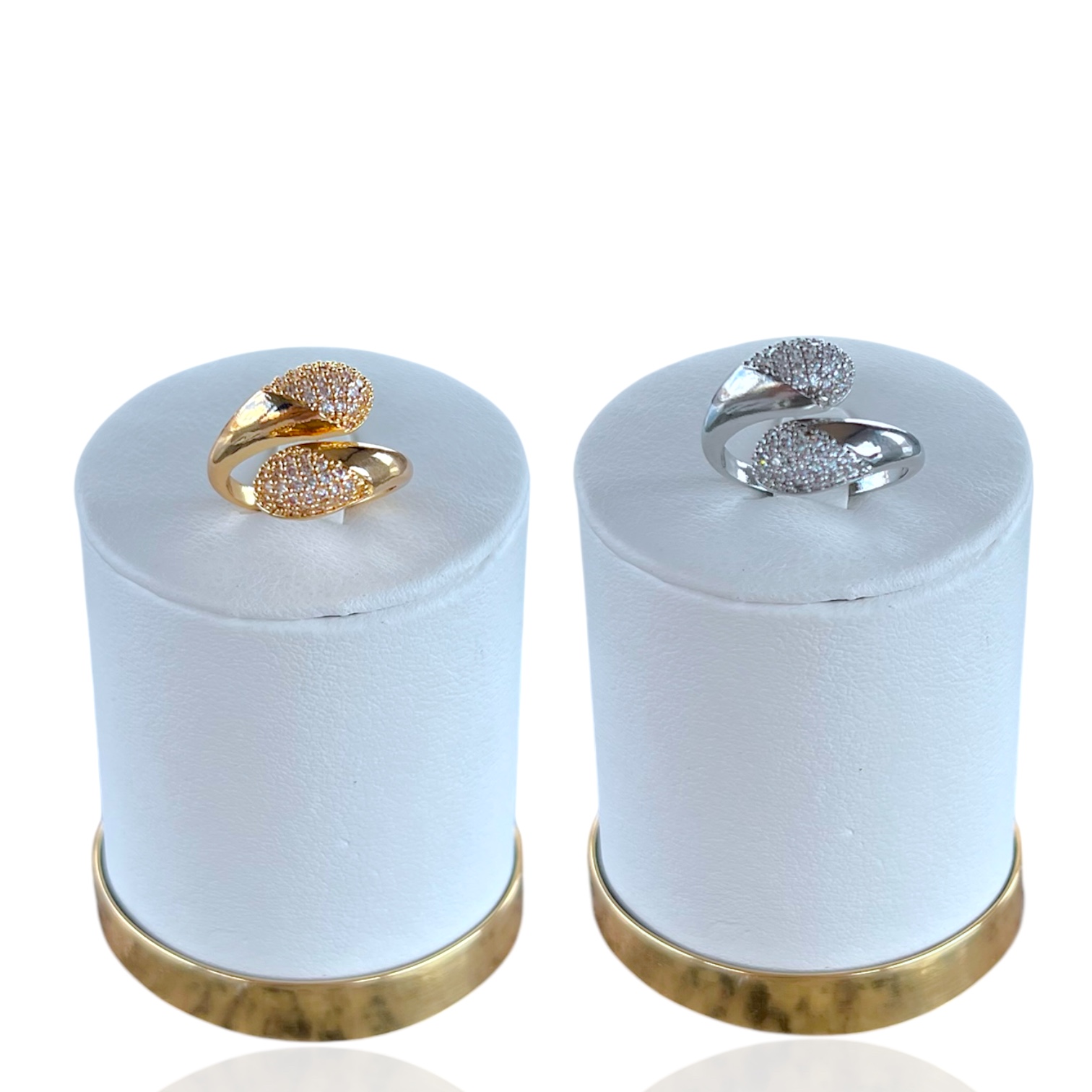Anel Ajustável Bijuteria Dourado e Prata Gota Cravejado