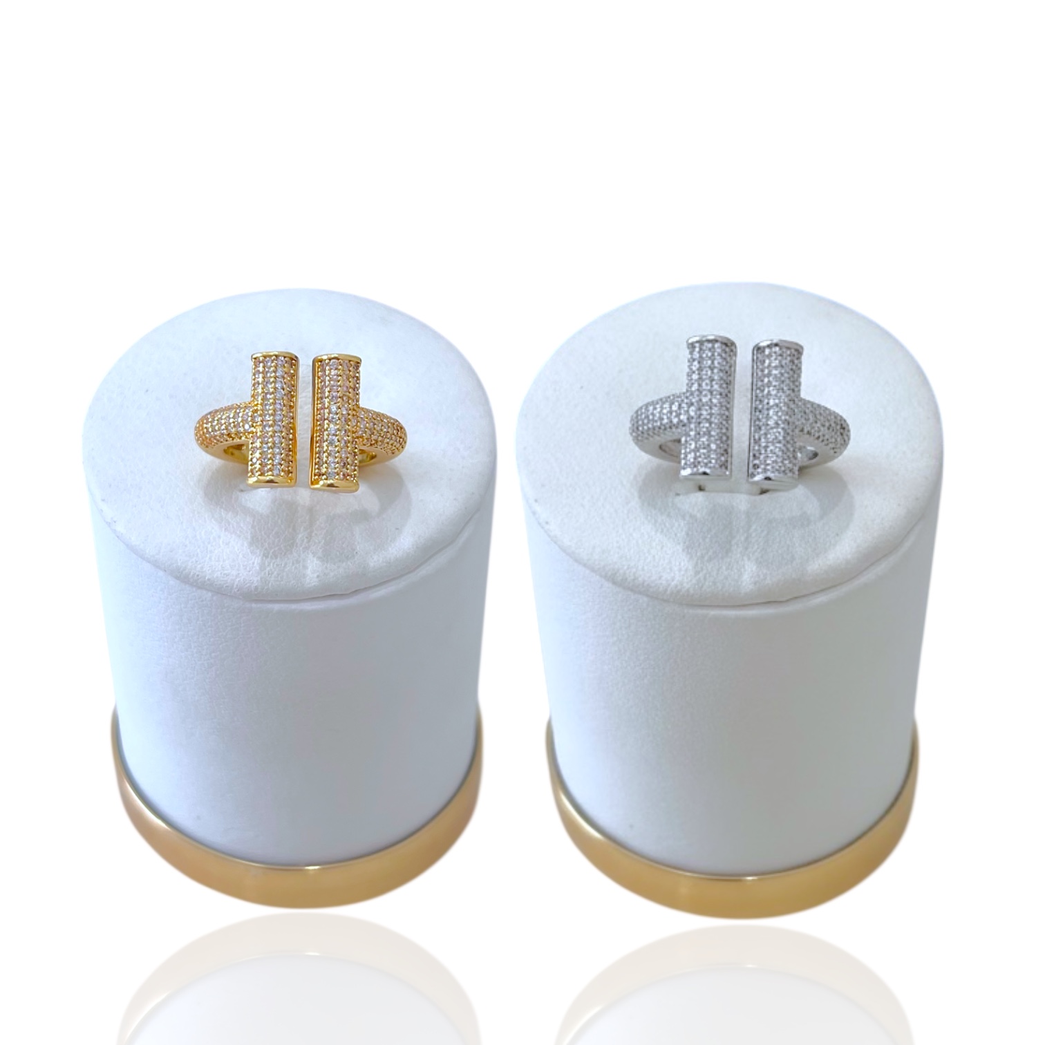 Anel Ajustável Bijuteria Dourado e Prata Inspired Cravejado