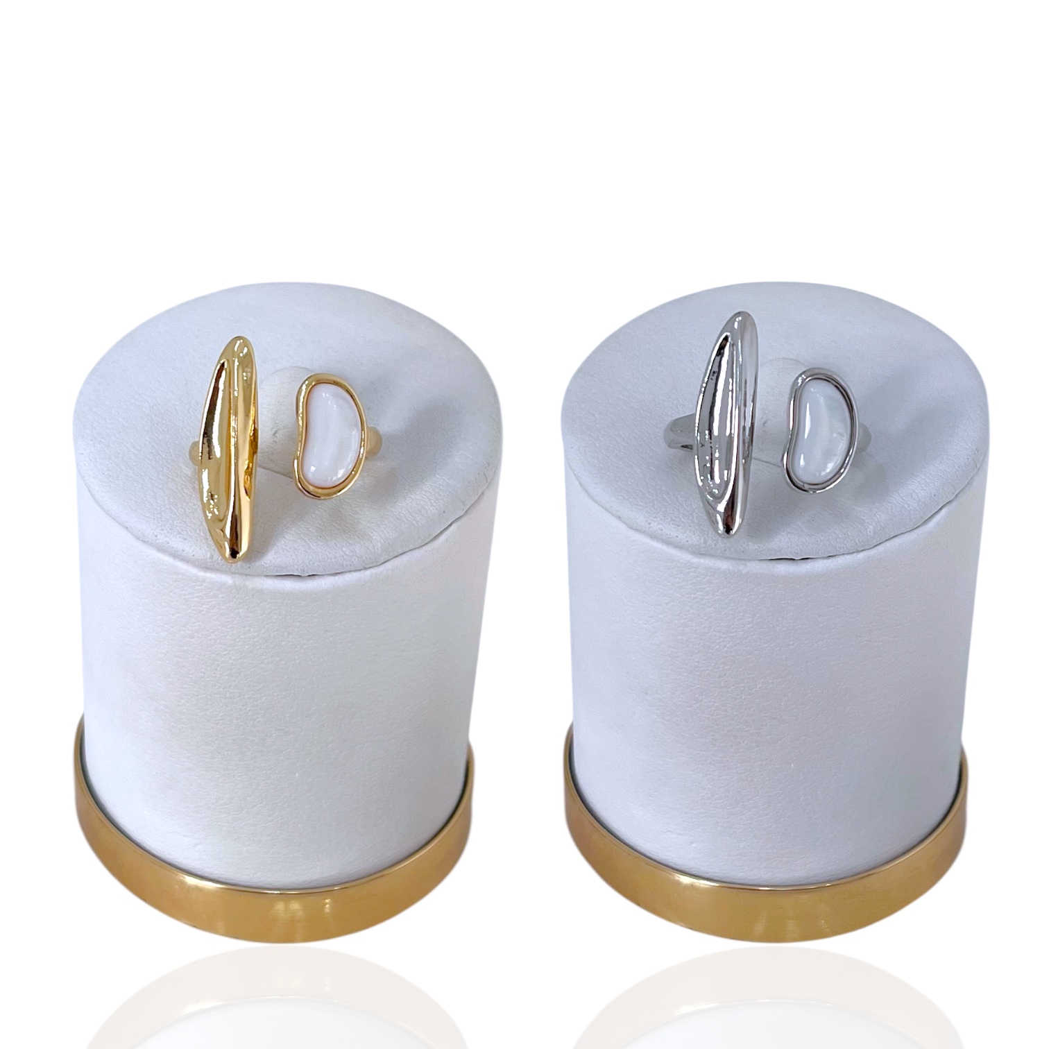 Anel Ajustável Bijuteria Dourado e Prata Madrepérola Palito