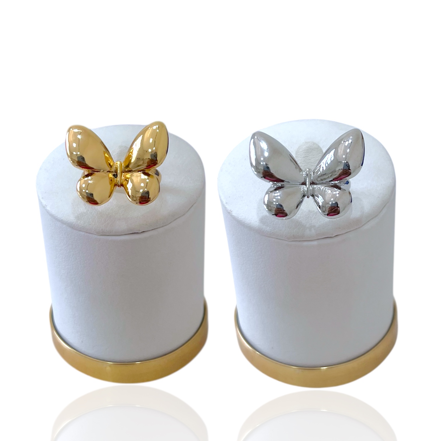 Anel Ajustável Bijuteria Dourado e Prata Orgânico Borboleta