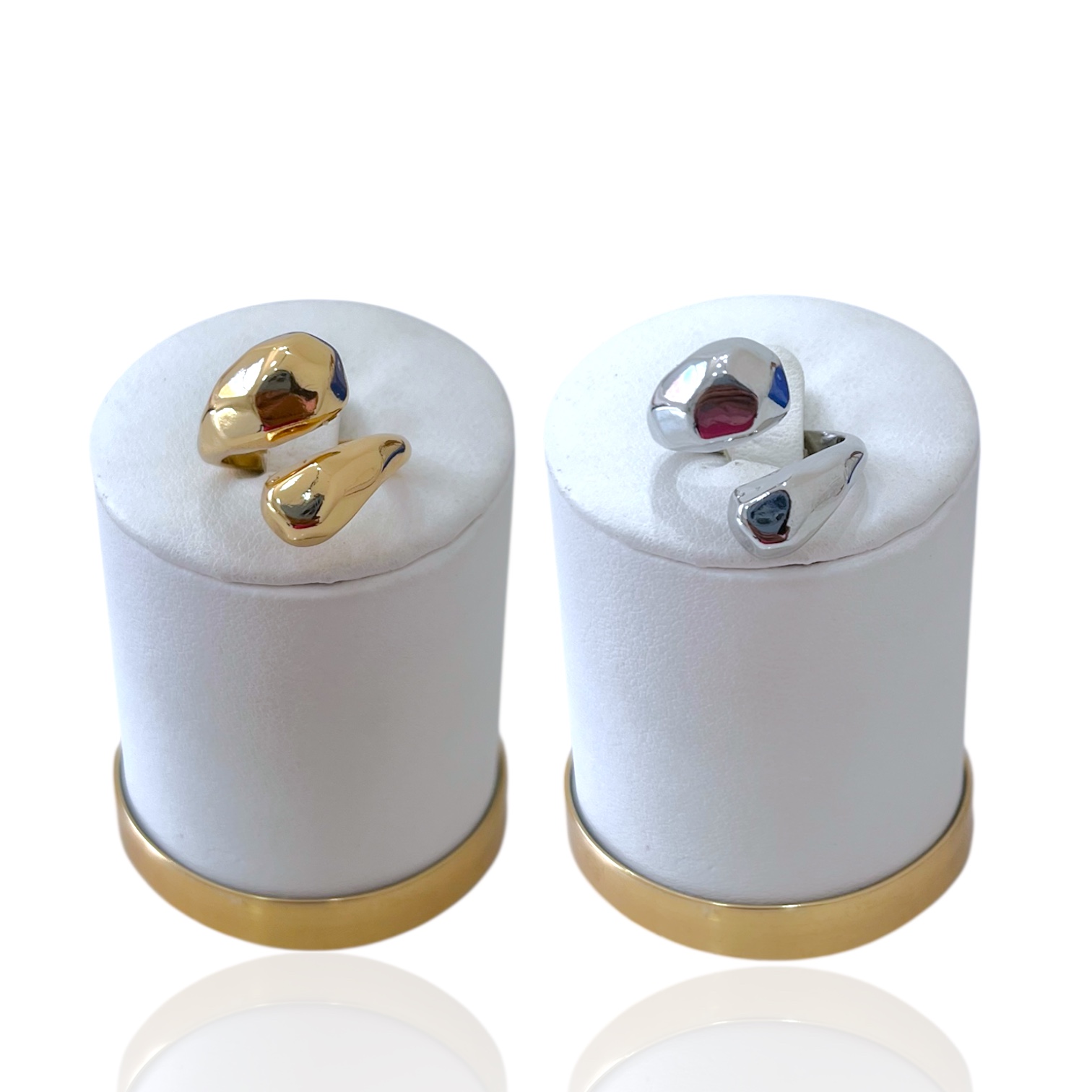 Anel Ajustável Bijuteria Dourado e Prata Orgânico Duas Gotas Martelada