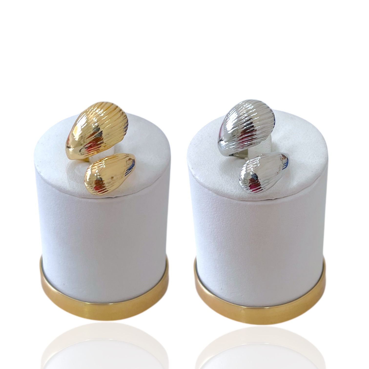 Anel Ajustável Bijuteria Dourado e Prata Orgânico Duas Gotas Riscada