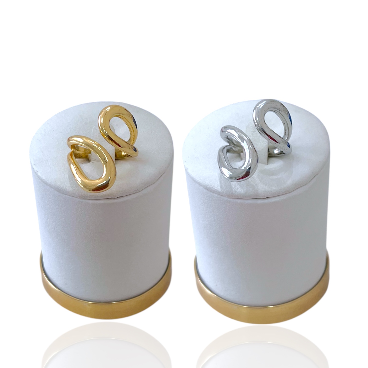 Anel Ajustável Bijuteria Dourado e Prata Orgânico Duas Gotas Vazada