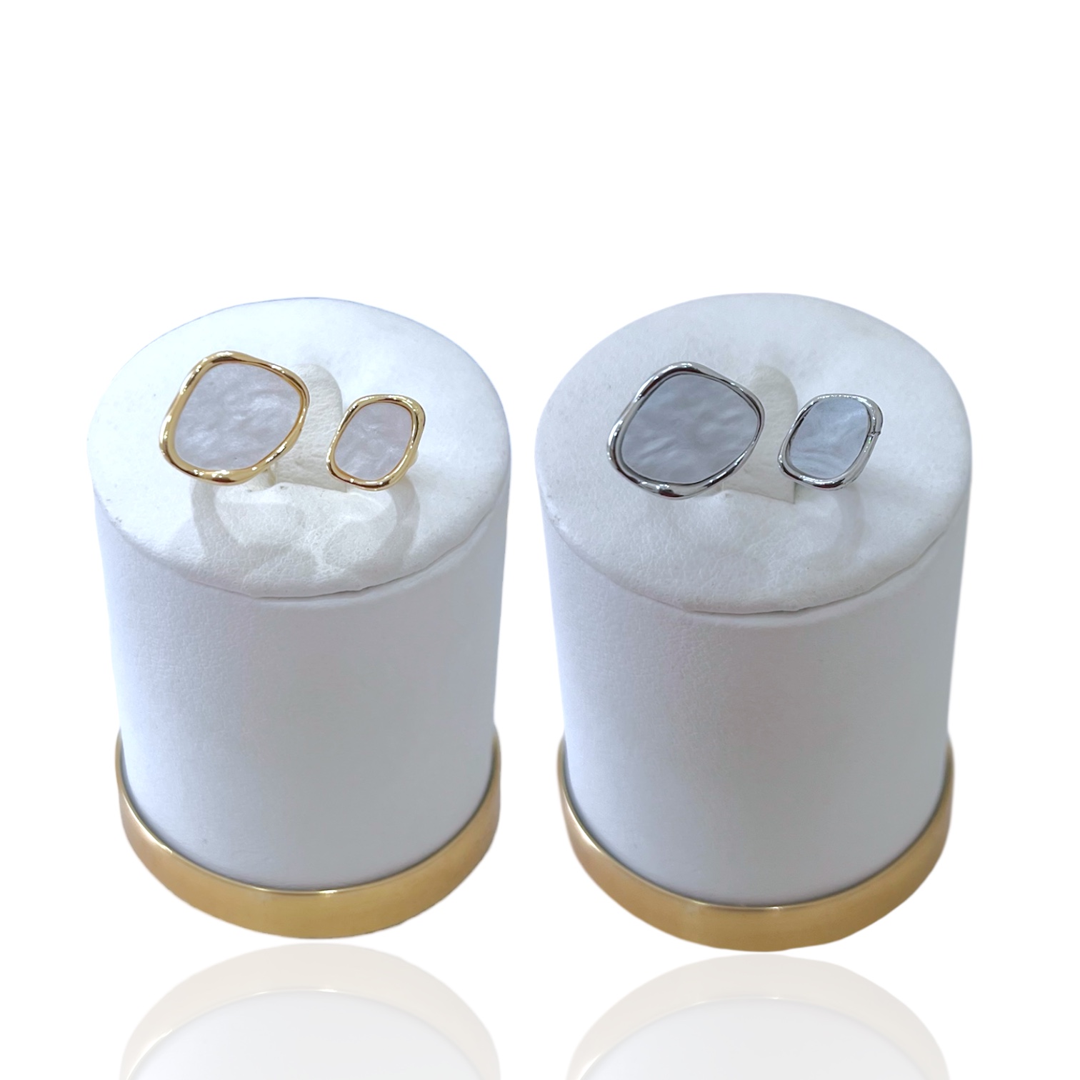 Anel Ajustável Bijuteria Dourado e Prata Orgânico Madrepérola