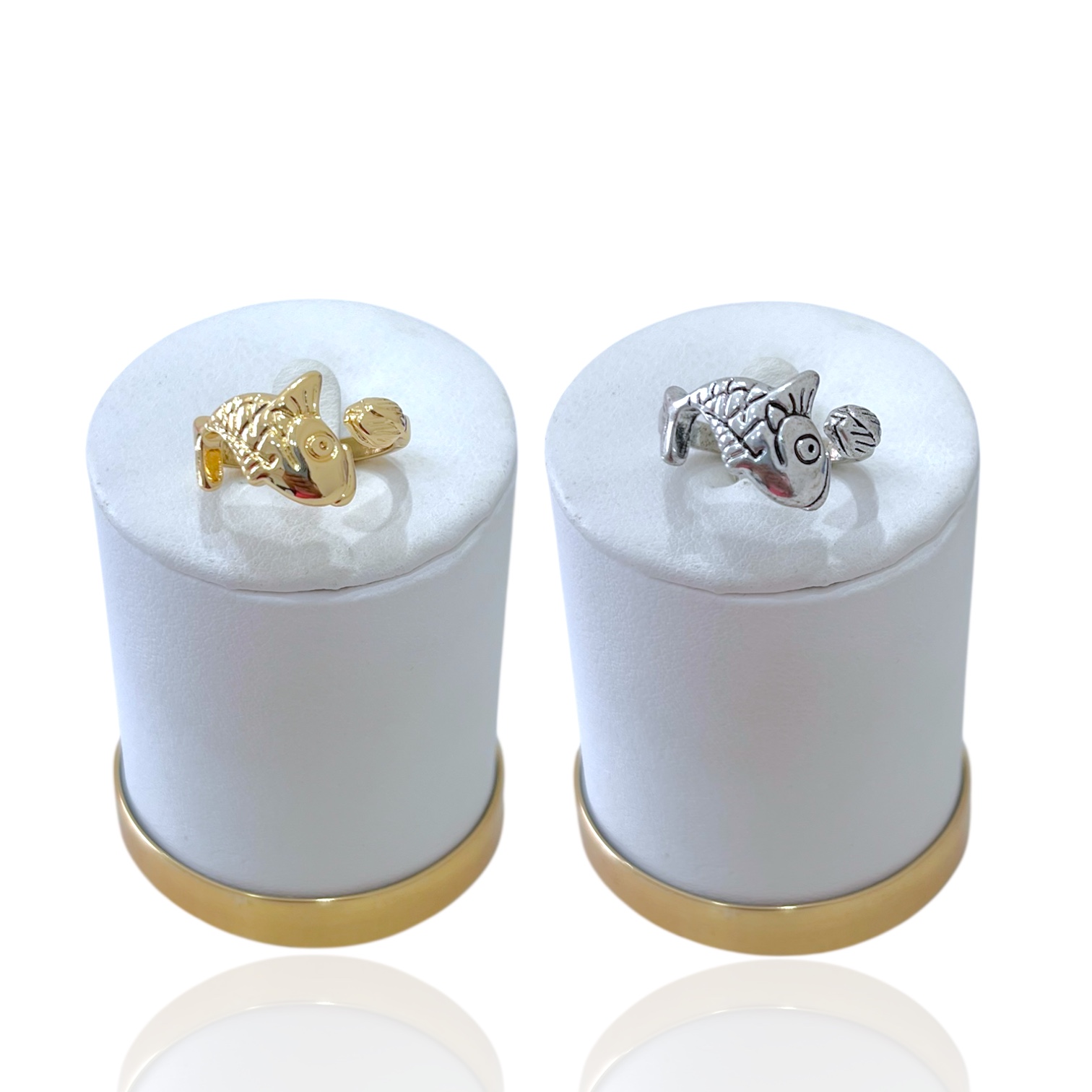 Anel Ajustável Bijuteria Dourado e Prata Orgânico Peixe