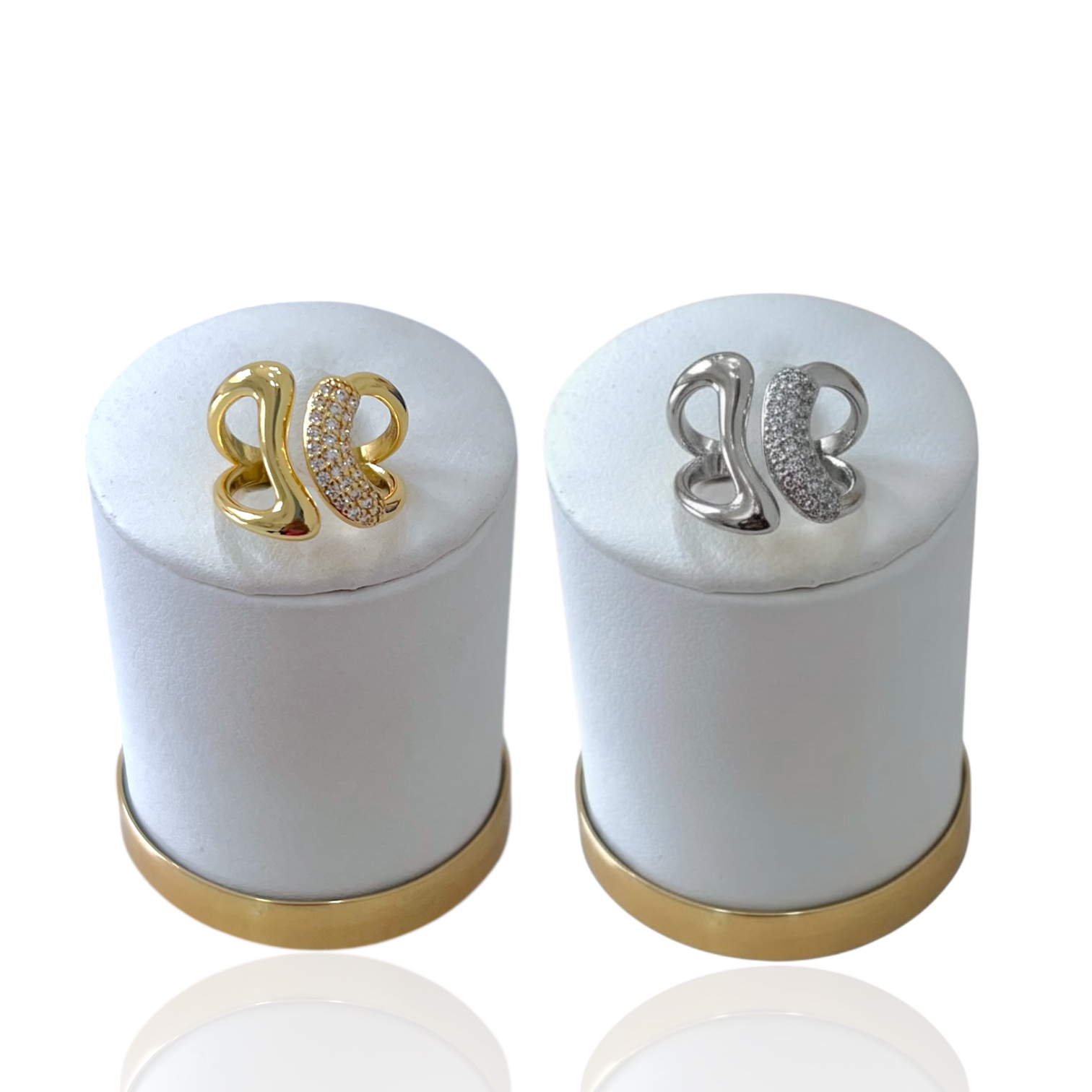 Anel Ajustável Bijuteria Dourado e Prata Orgânico Vazado Cravejado