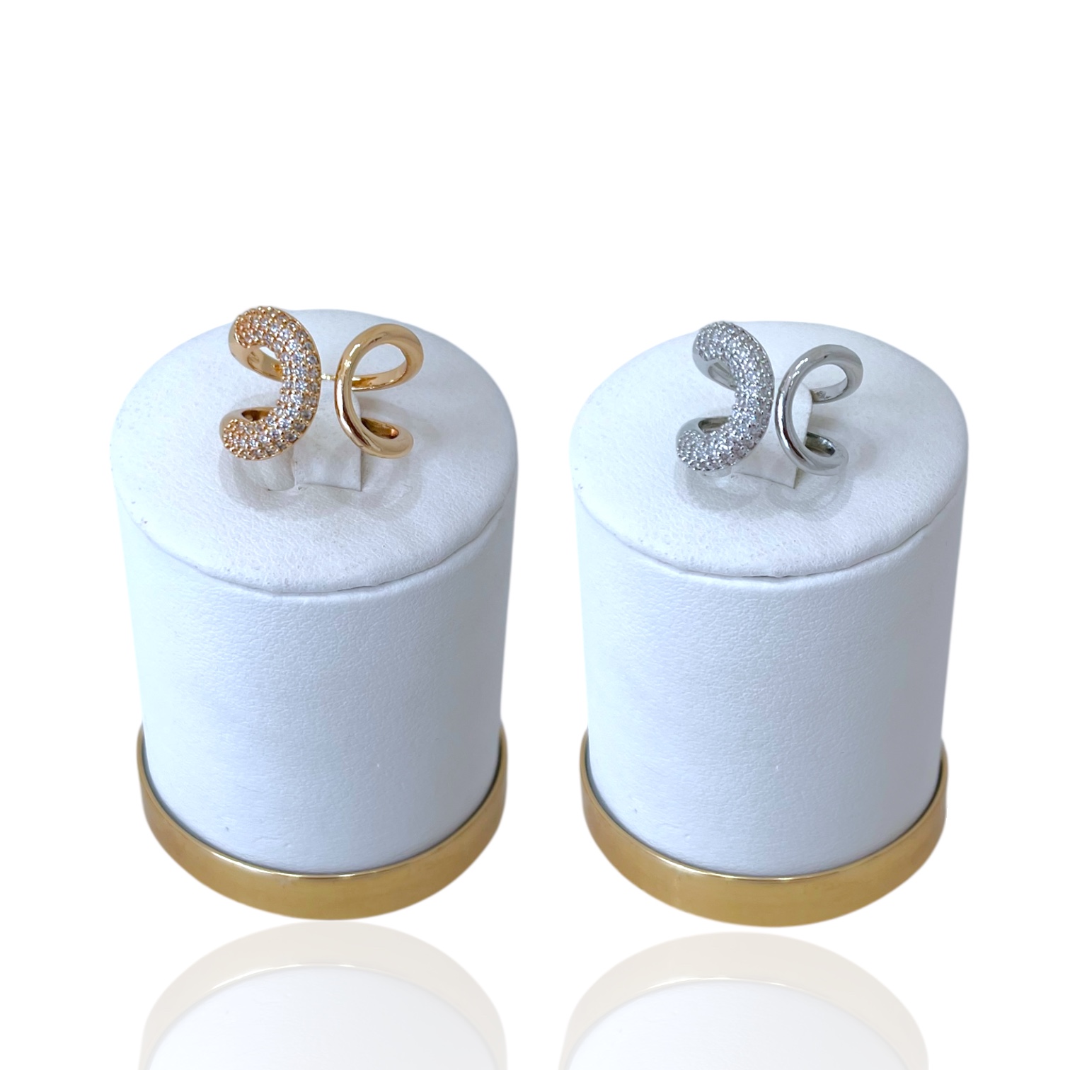 Anel Ajustável Bijuteria Dourado e Prata X Vazado Cravejado