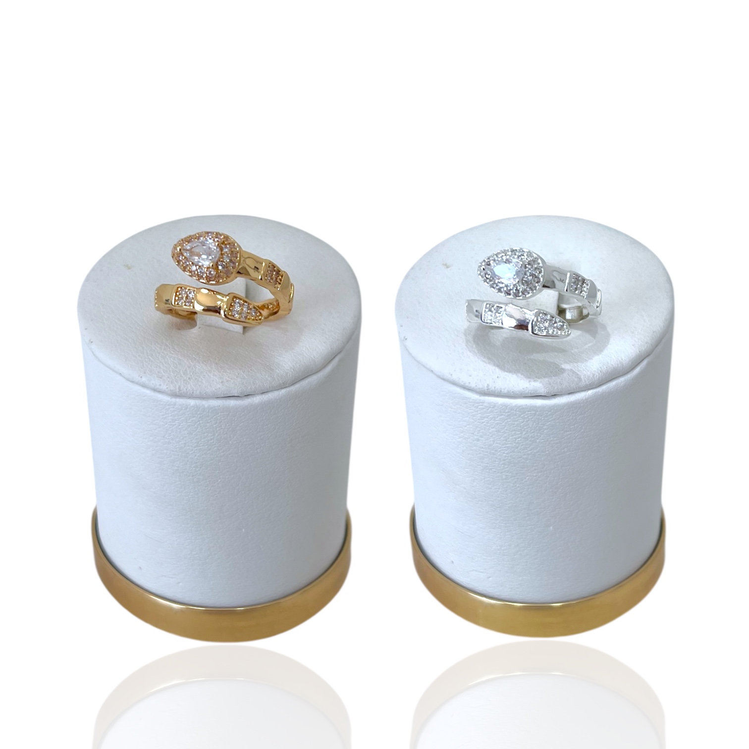 Anel Ajustável Bijuteria Dourado e Prata Serpente Cravejada