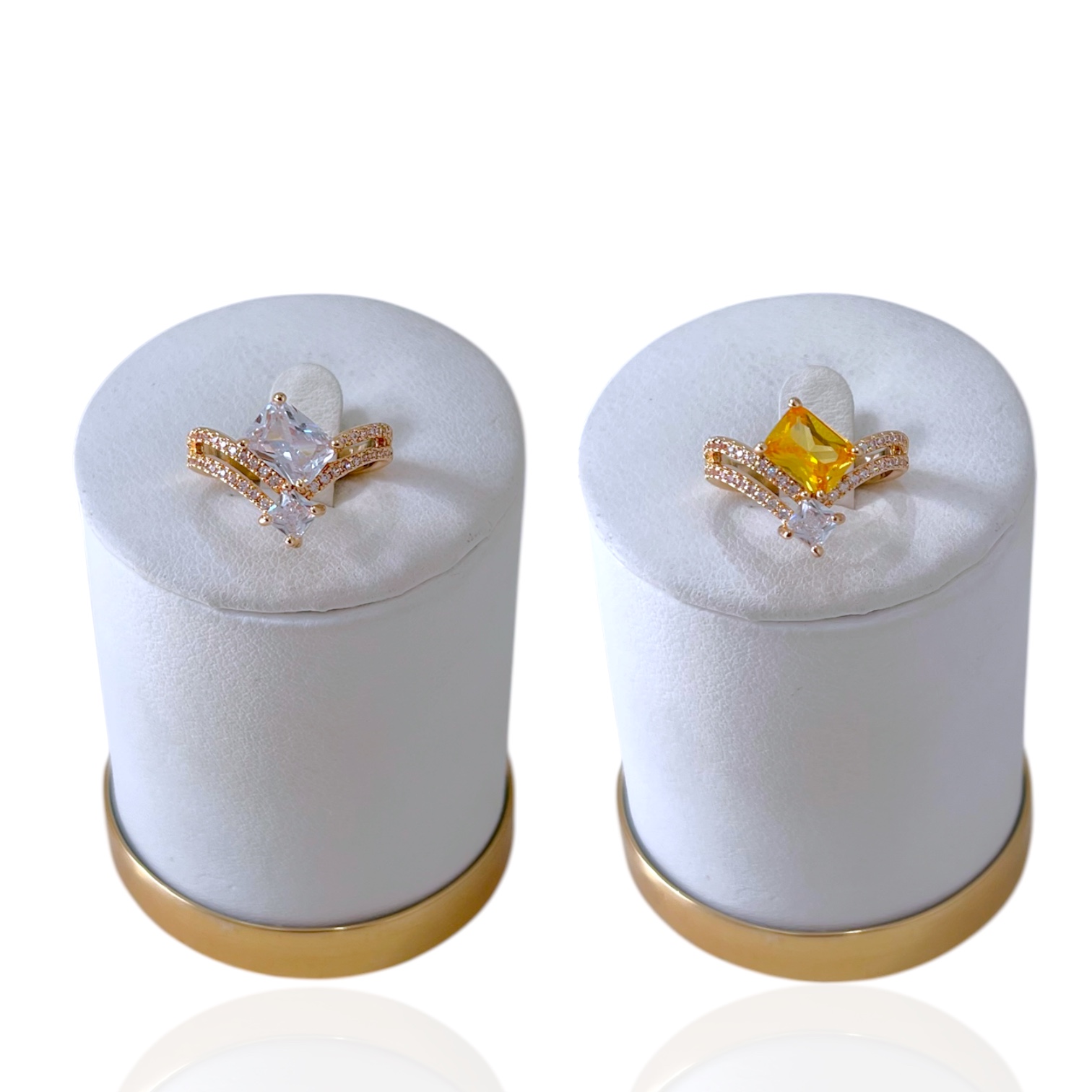Anel Ajustável Bijuteria Dourado Quadrado Cravejado
