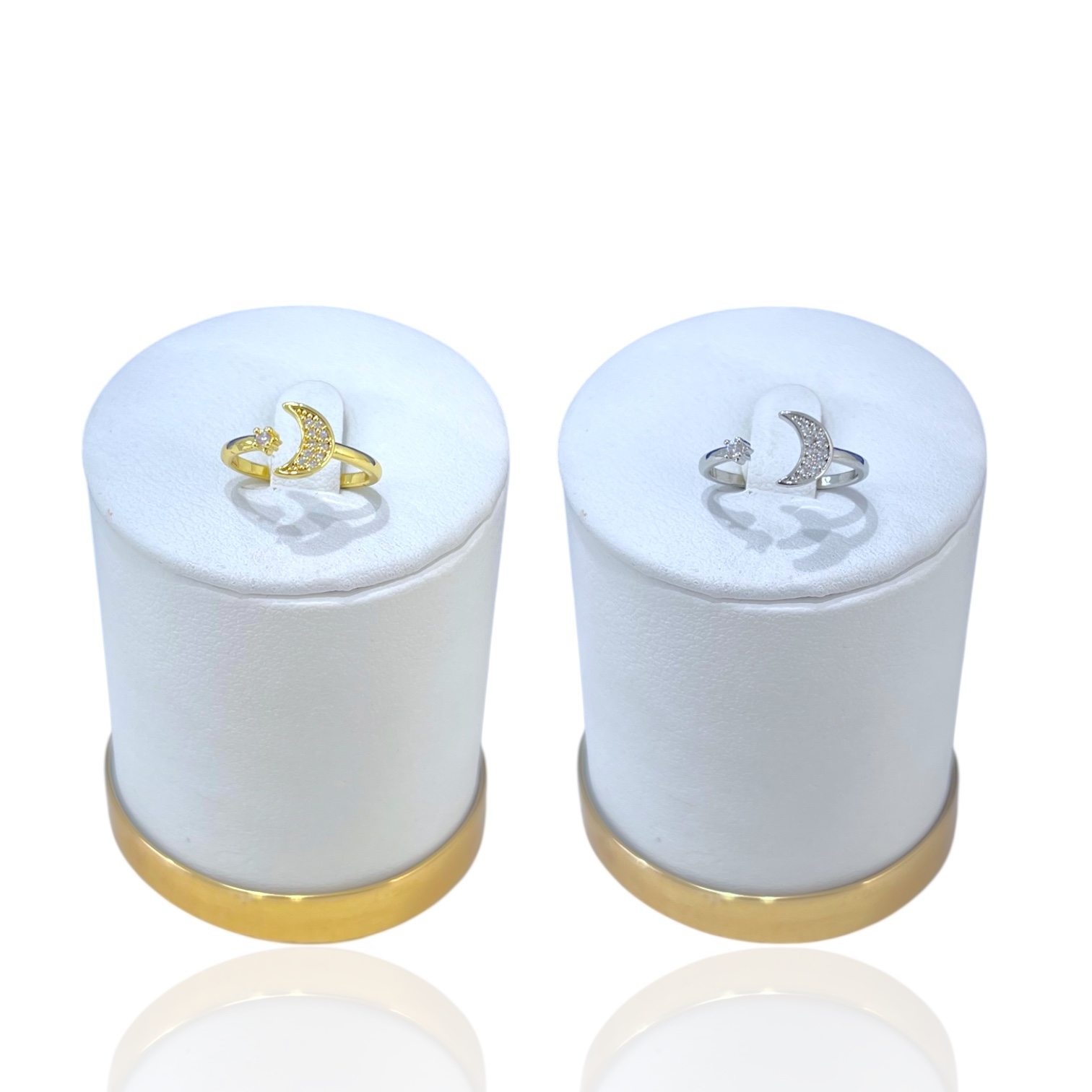 Anel Falange Ajustável Bijuteria Dourado e Prata Lua Cravejada