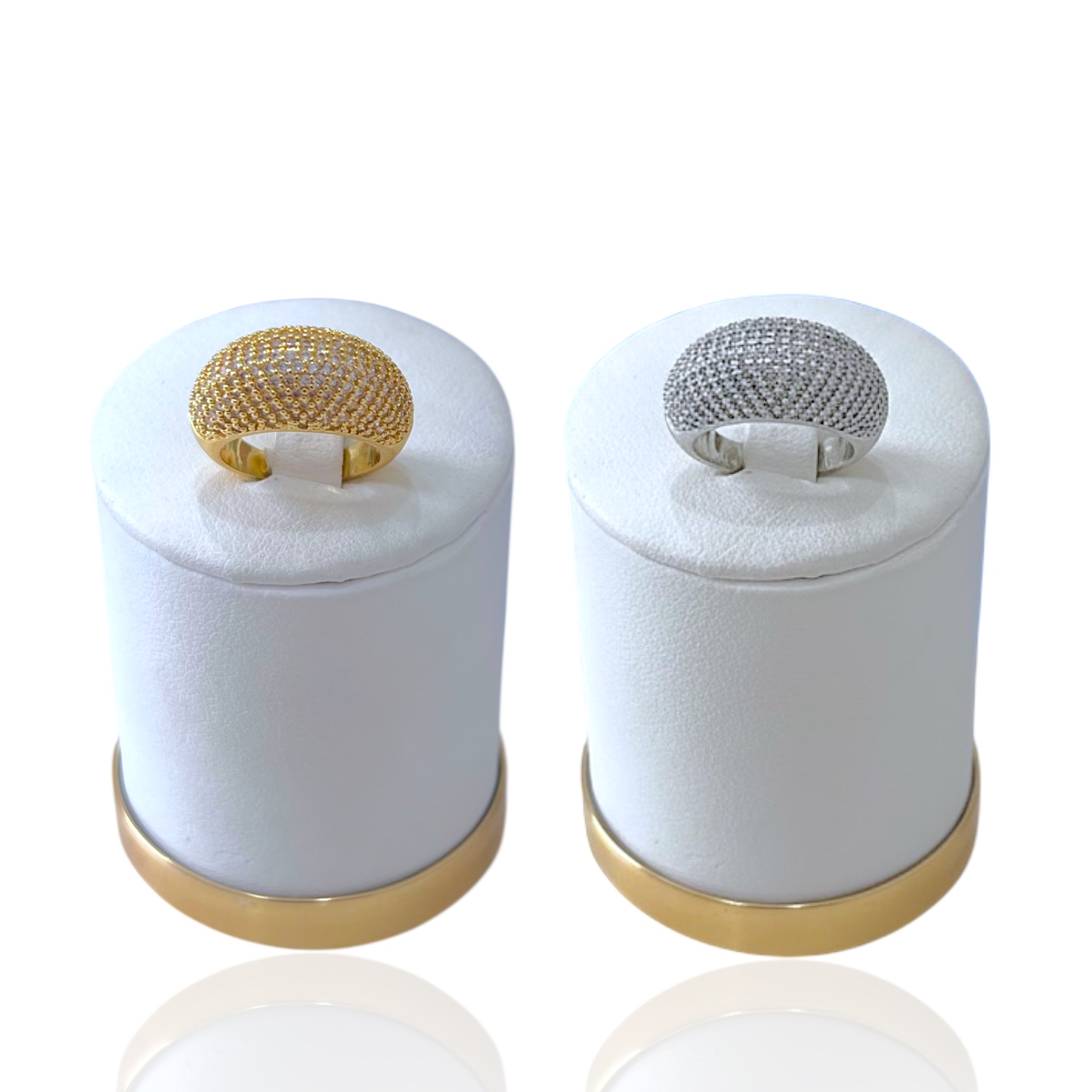 Anel Numeração Bijuteria Dourado e Prata Abaulado Cravejado