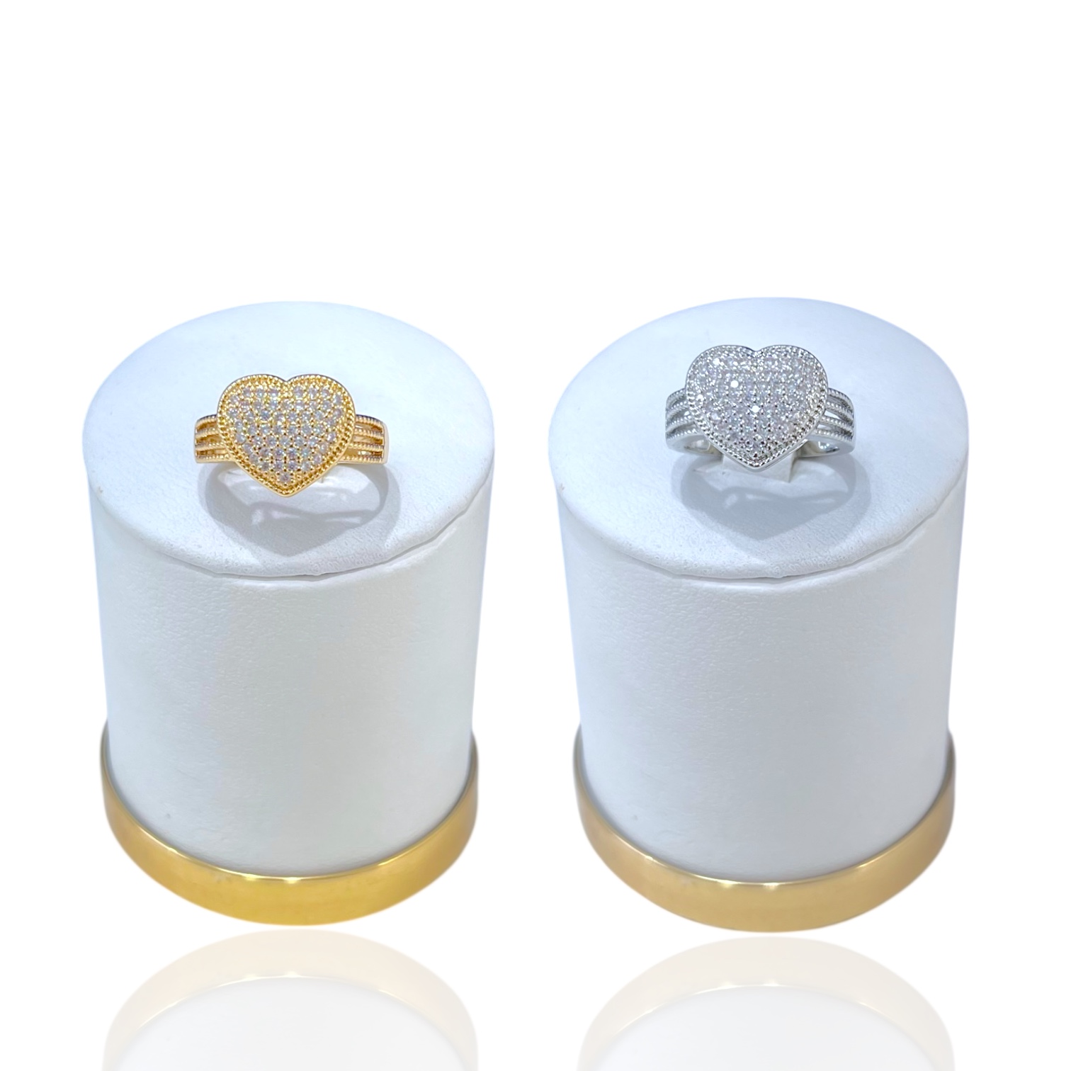 Anel Numeração Bijuteria Dourado e Prata Coração Cravejado