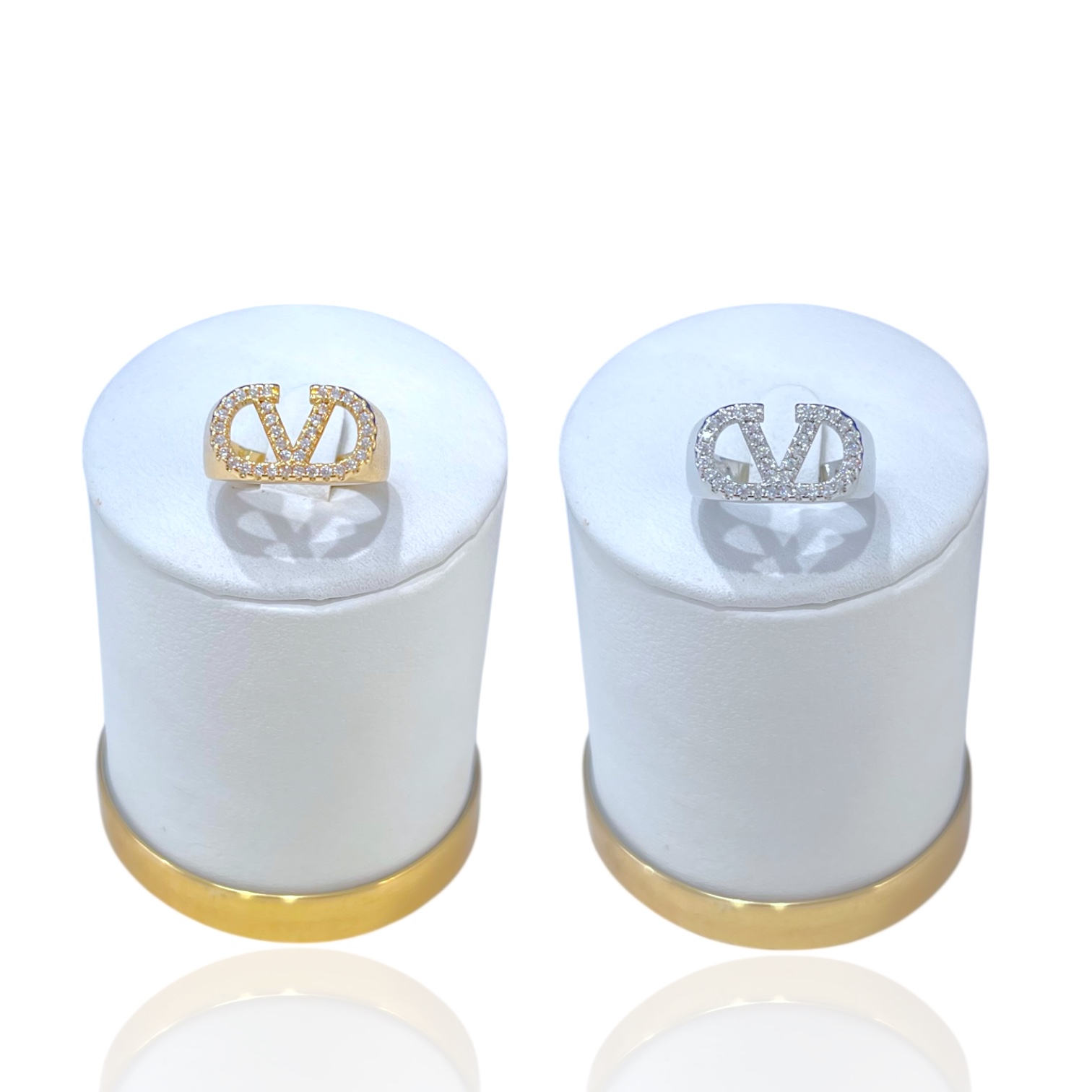 Anel Numeração Bijuteria Dourado e Prata Inspired V Cravejado