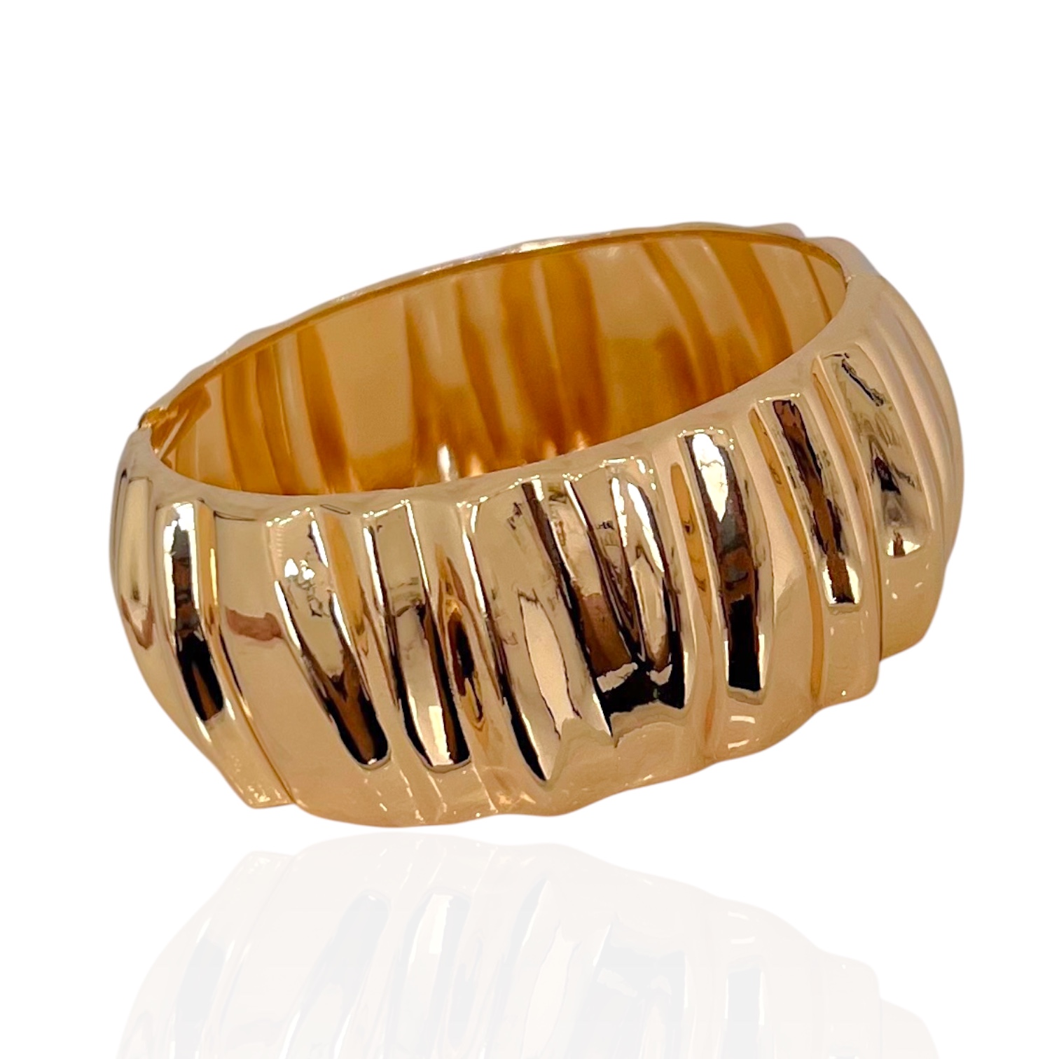 Bracelete Folheado Ouro 18k Abaulado Ondas Grande