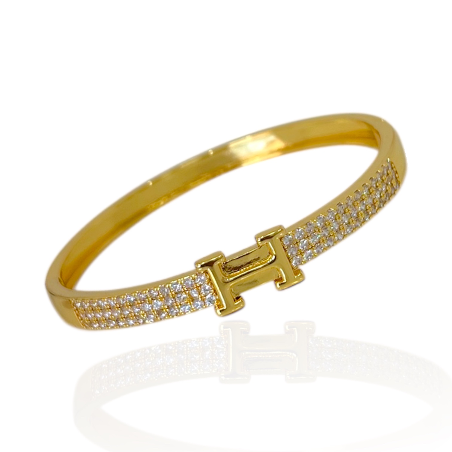 Bracelete Folheado Ouro 18k e Prata 925 Inspired H Cravejado
