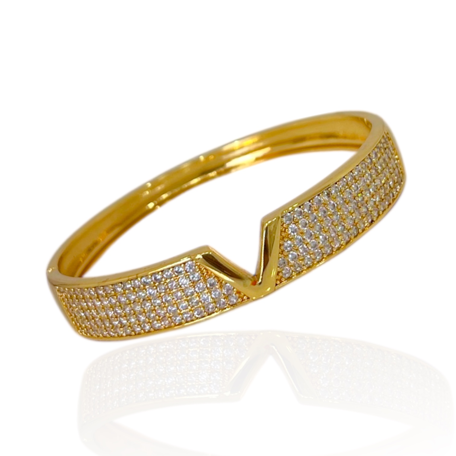Bracelete Folheado Ouro 18k e Prata 925 Inspired V Cravejado