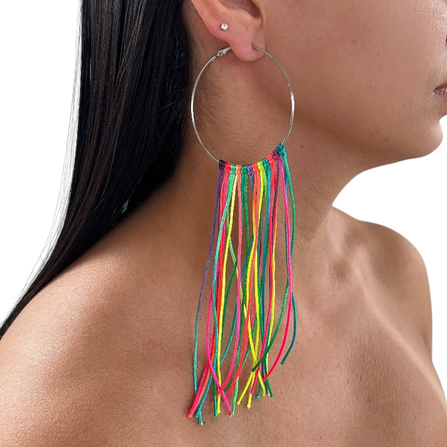 Brinco Carnaval Argola Franja Fios Encerados Bijuteria