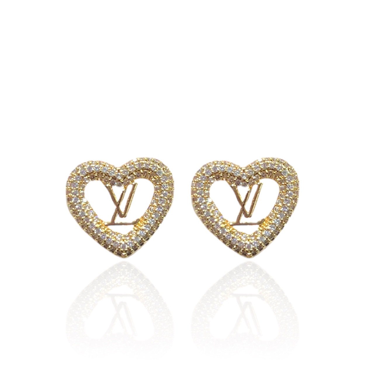 Brinco Folheado Ouro 18k e Prata 925 Coração Inspired Cravejado