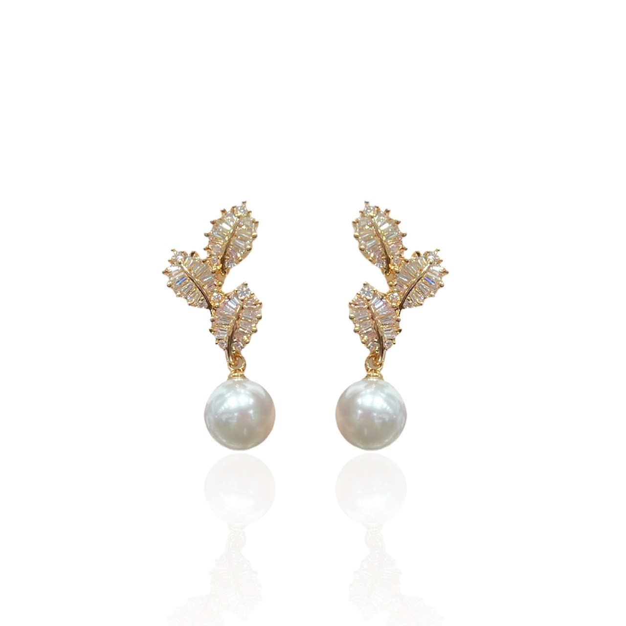 Brinco Folheado Ouro 18k e Prata 925 Folhas Cravejada Pérola