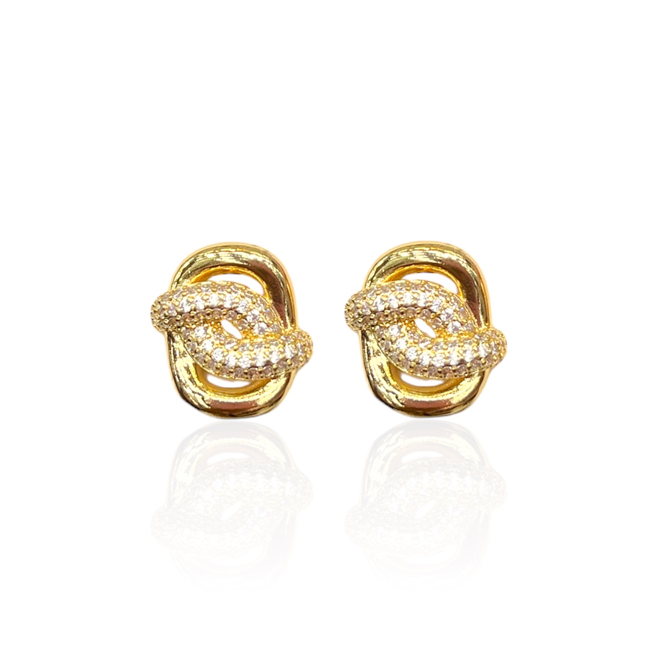 Brinco Folheado Ouro 18k e Prata 925 Quadrado Cravejado