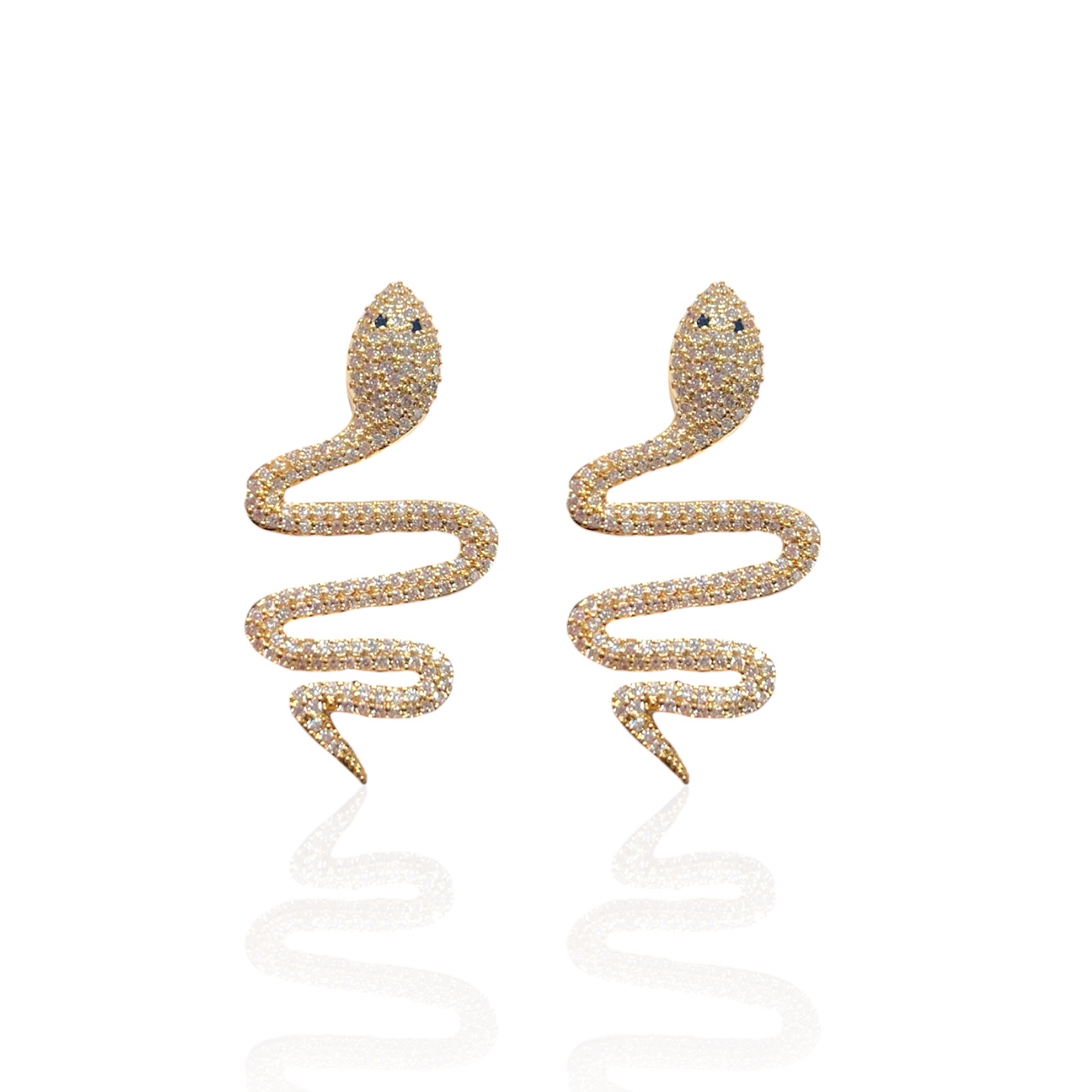 Brinco Folheado Ouro 18k e Prata 925 Serepente Cravejada