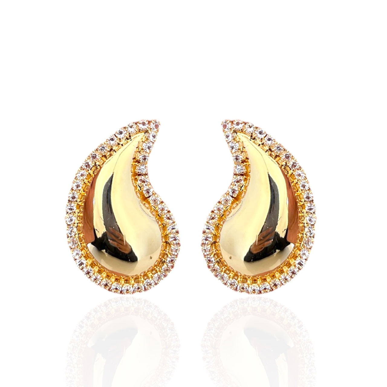 Brinco Folheado Ouro 18k Gota Virgula Strass