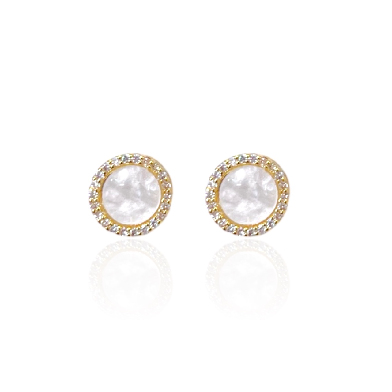 Brinco Folheado Ouro 18k Redondo Madrepérola Cravejado