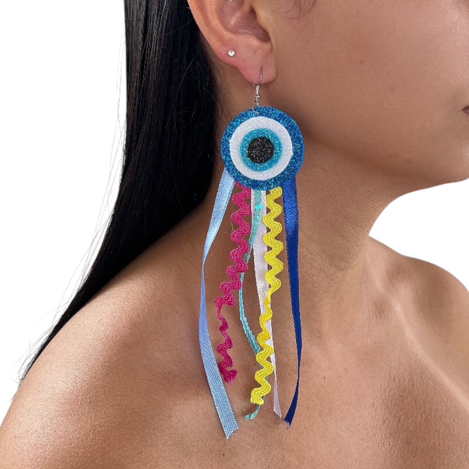 Brinco Franja Olho Grego Fita Bijuteria