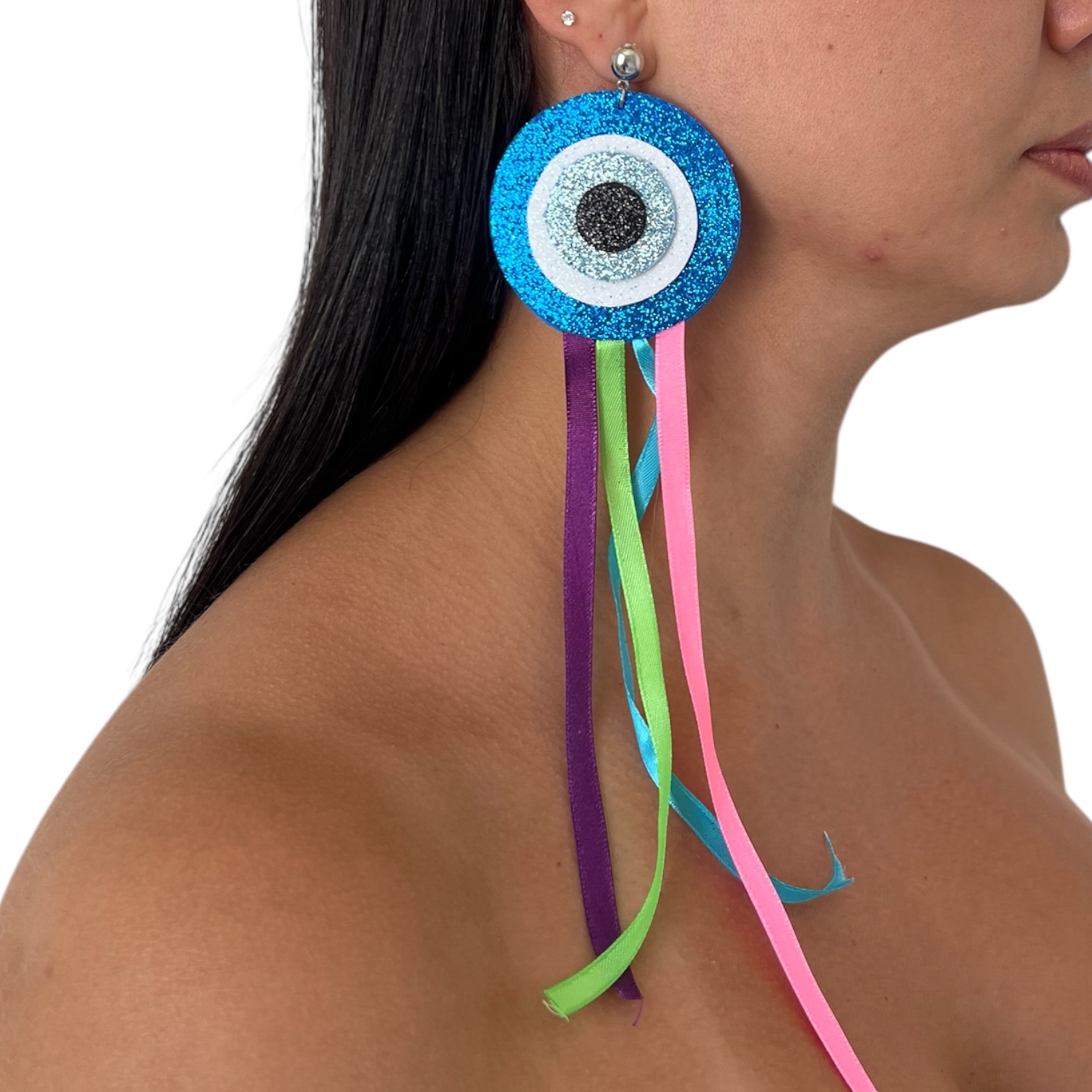 Brinco Franja Olho Grego Fitas Bijuteria