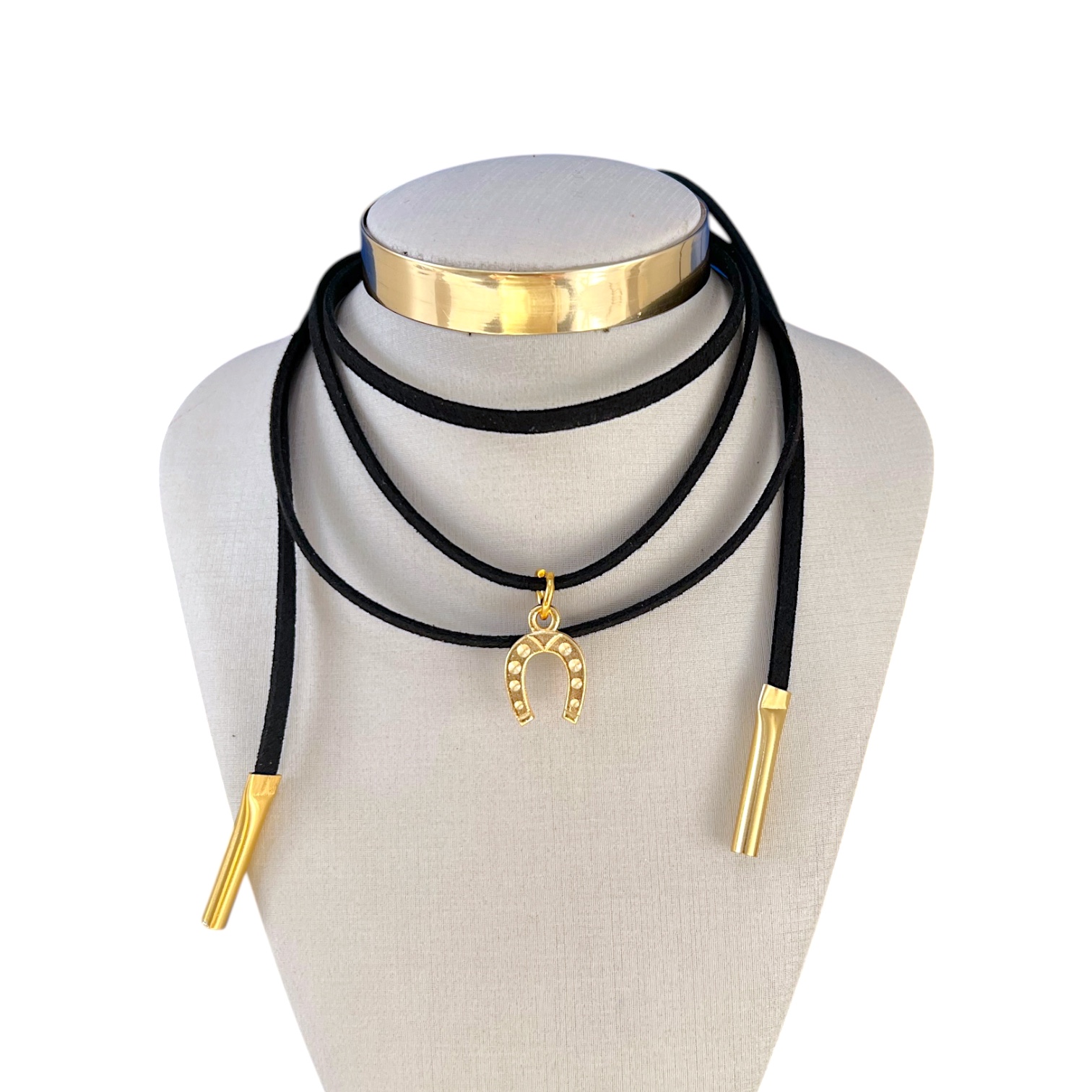 Choker Couro Bijuteria Dourado Country Ferradura
