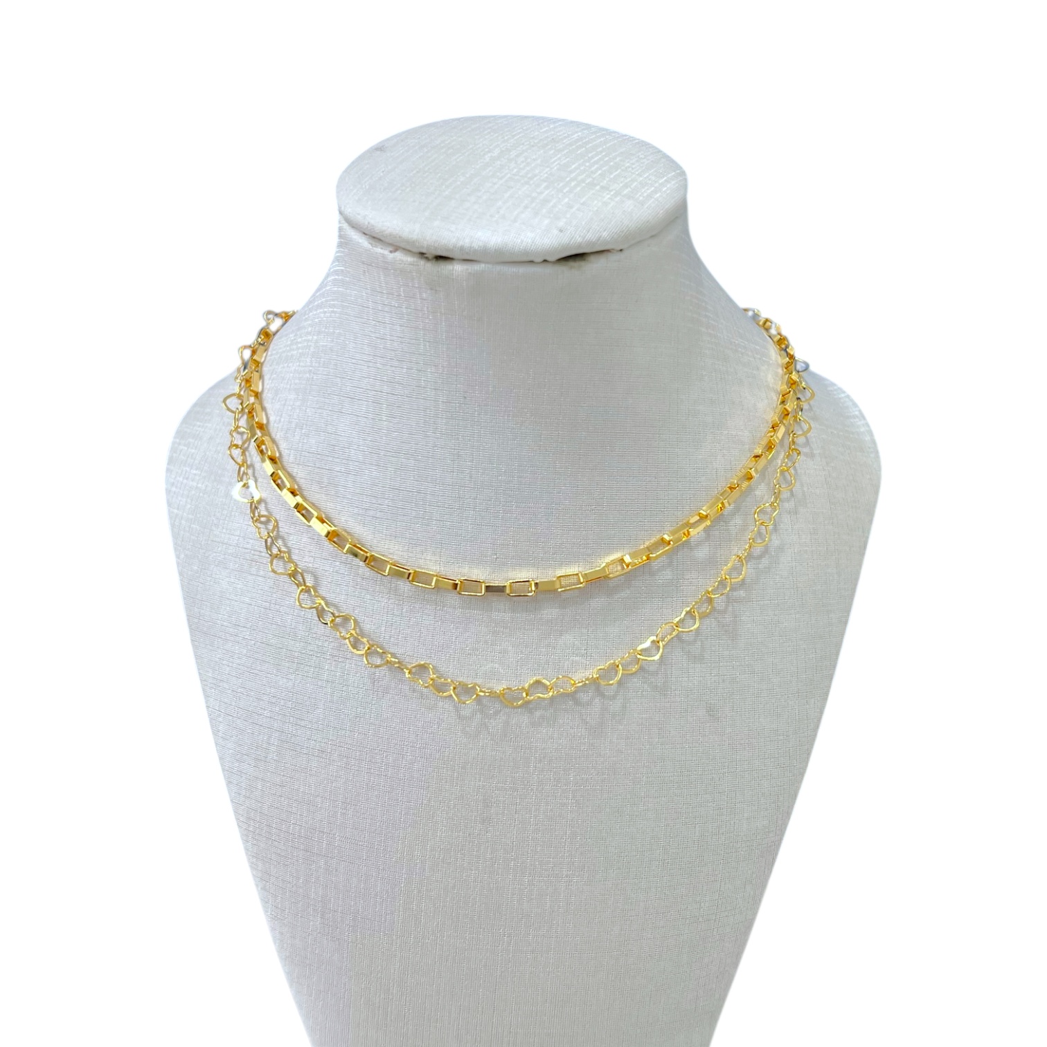 Choker Dupla Folheada Ouro 18k e Prata 925 Elos Corações