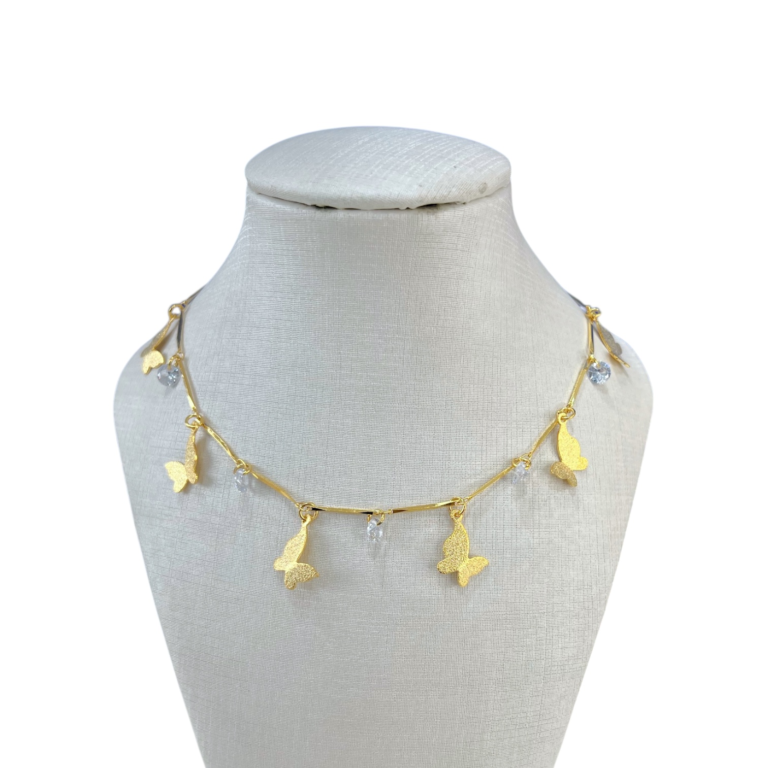 Choker Folheada Ouro 18k e Prata 925 Borboletas Ponto de Luz