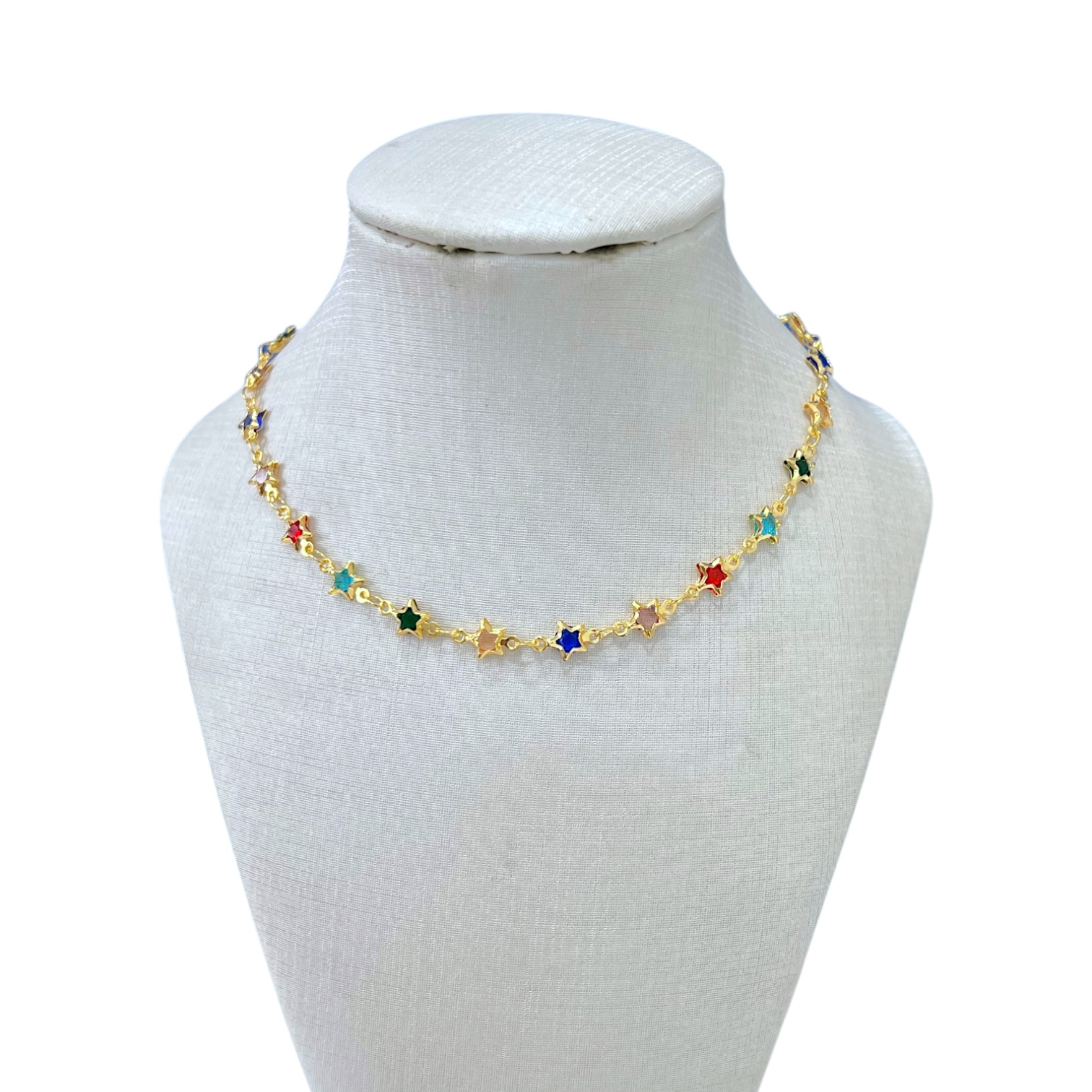 Choker Folheada Ouro 18k e Prata 925 Estrelas Cristais