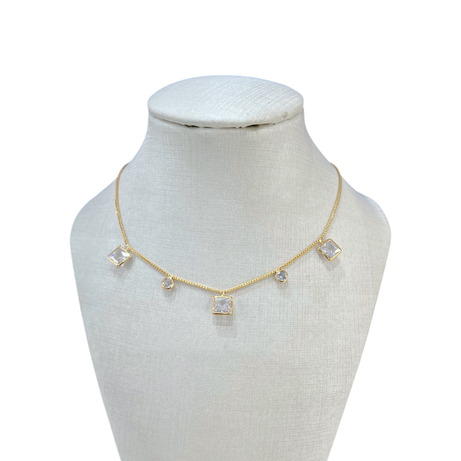 Choker Folheada Ouro 18k Quadrado Ponto de Luz