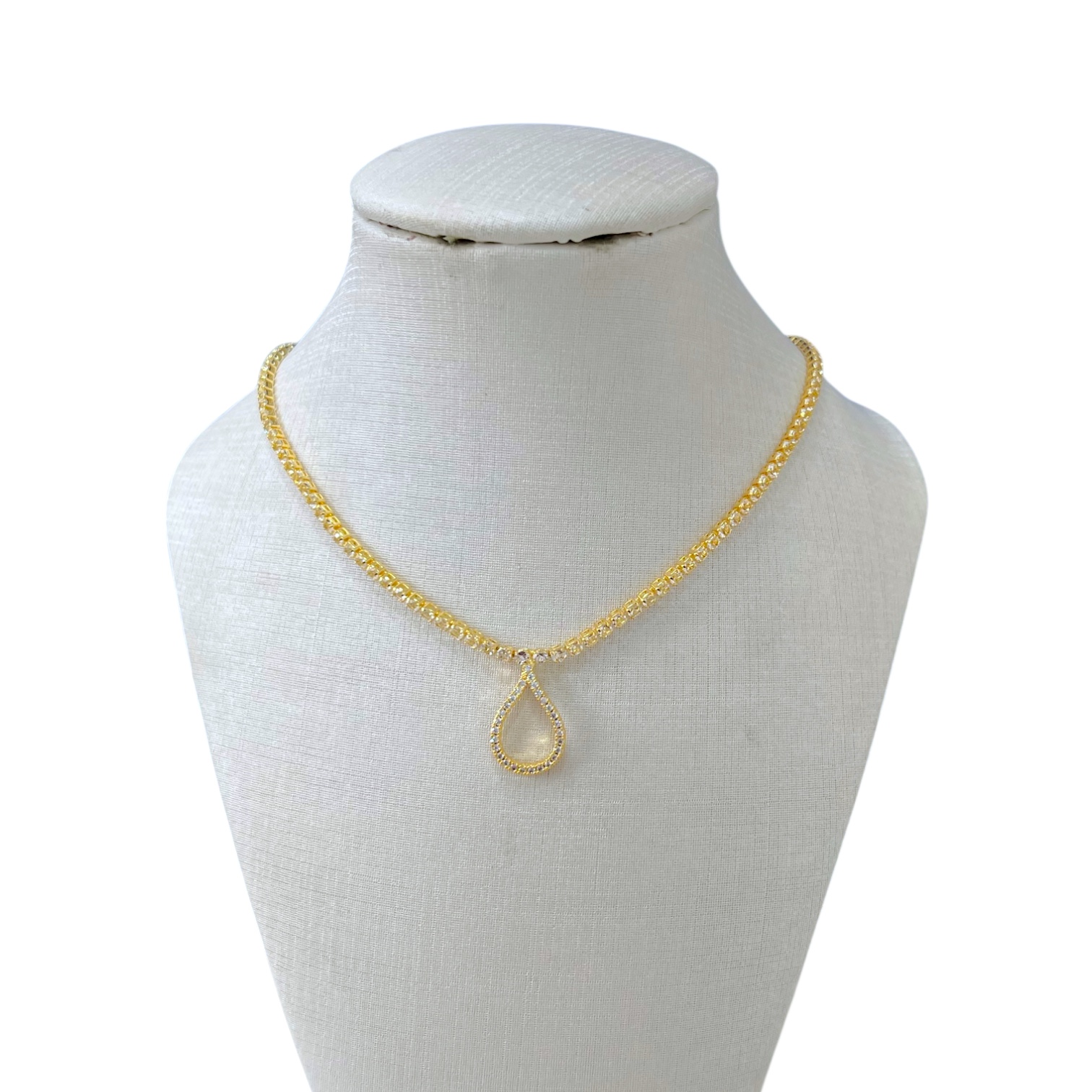 Choker Folheada Ouro 18k Riviera Gota Cravejada