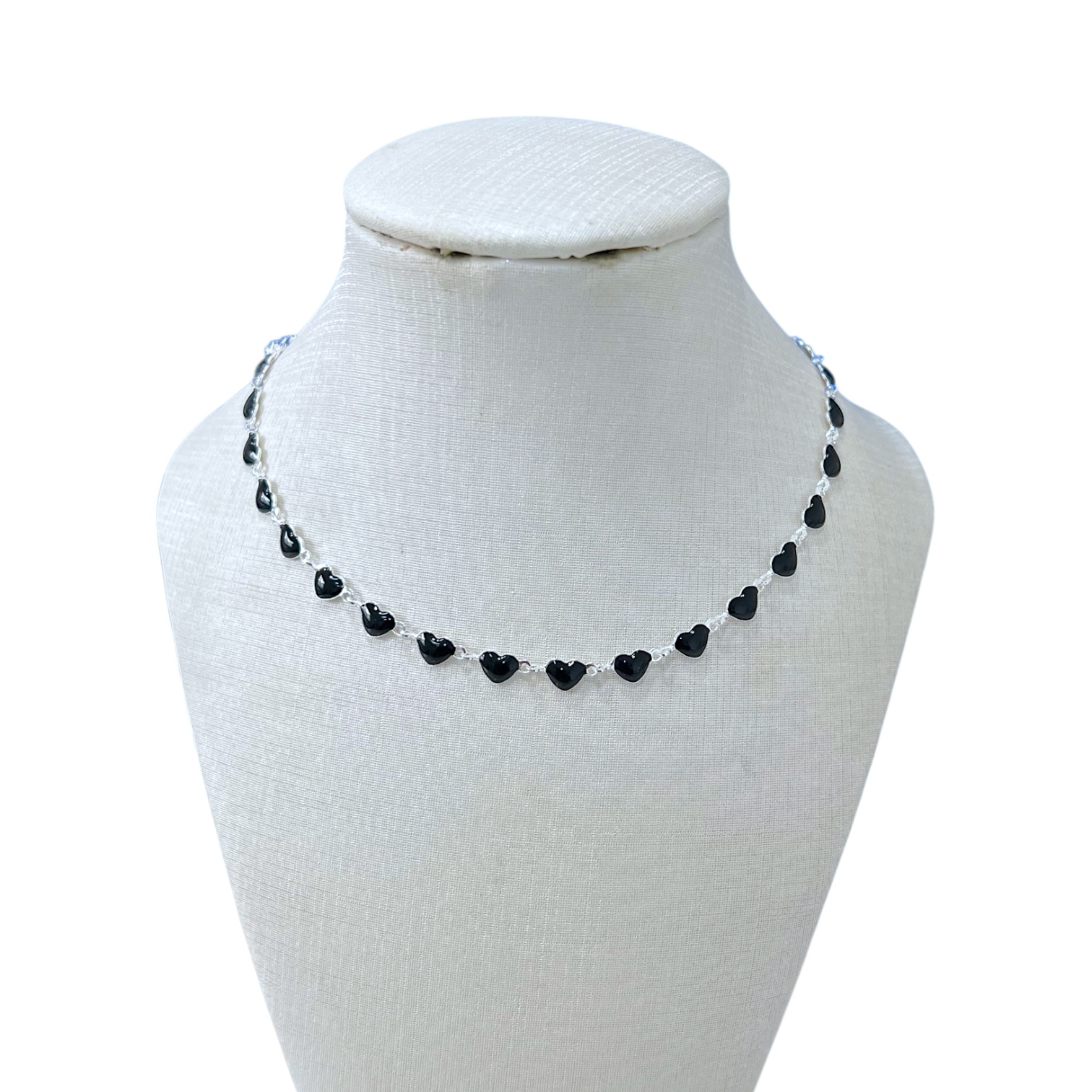 Choker Folheada Prata 925 Corações Resinado