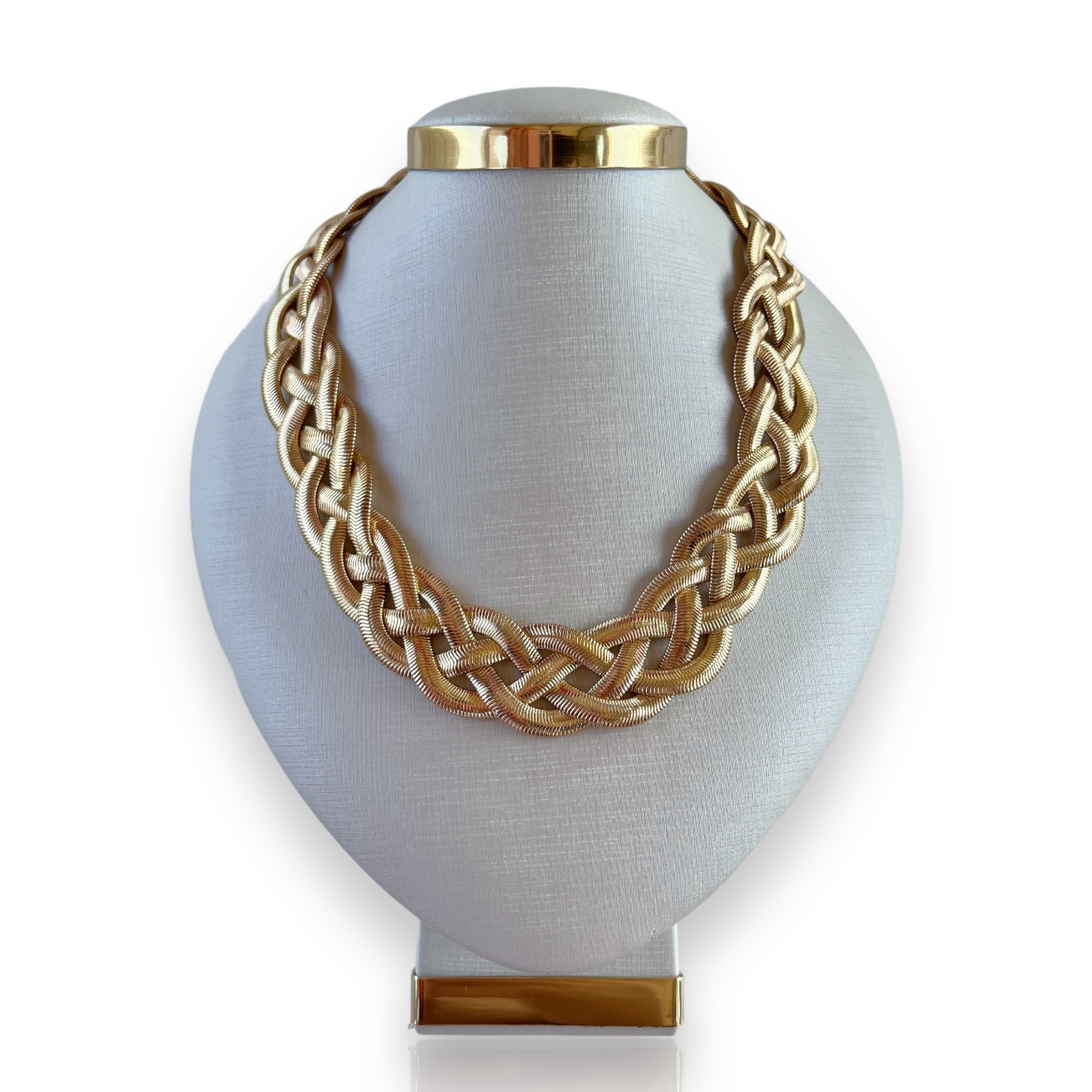 Colar Bijuteria Dourado e Prata Trançado Grosso