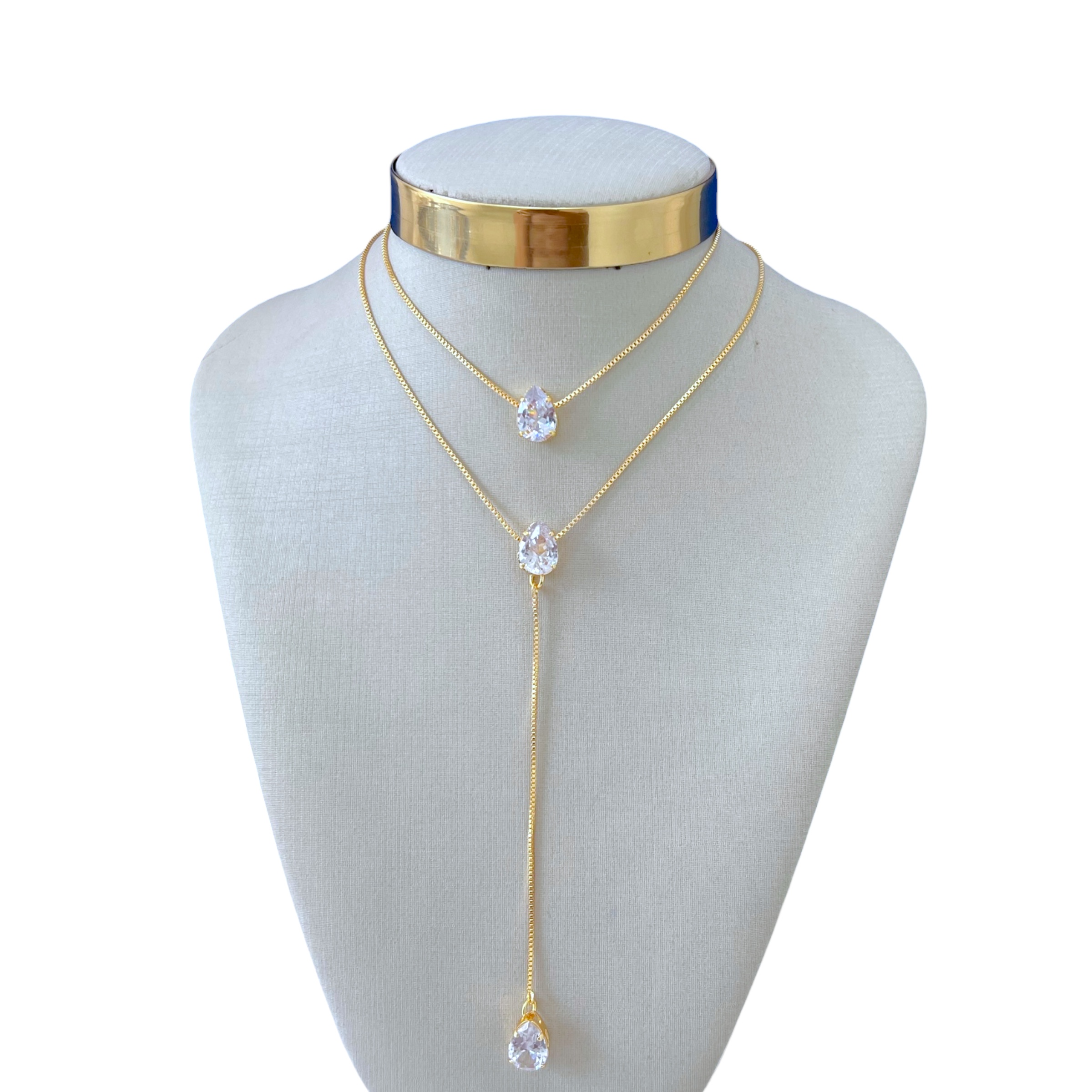 Colar Duplo Folheado Ouro 18k e Prata 925 Gravatinha Gotas