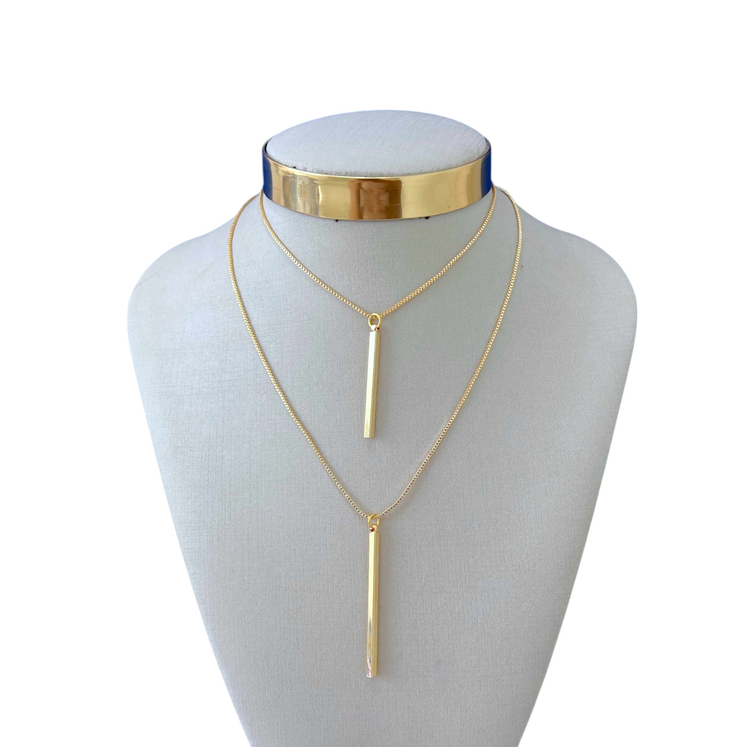 Colar Duplo Folheado Ouro 18k e Prata 925 Palitos