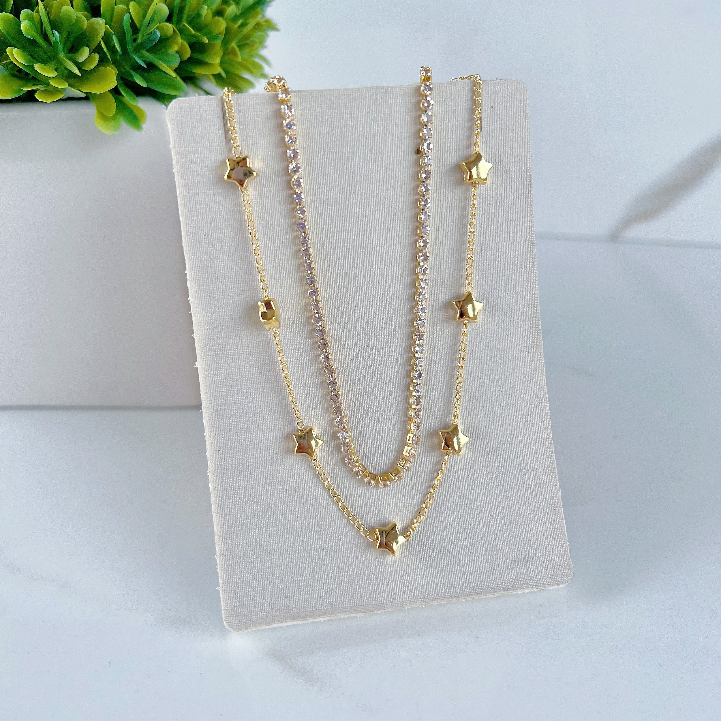 Colar Duplo Folheado Ouro 18k e Prata 925 Riviera Estrelas
