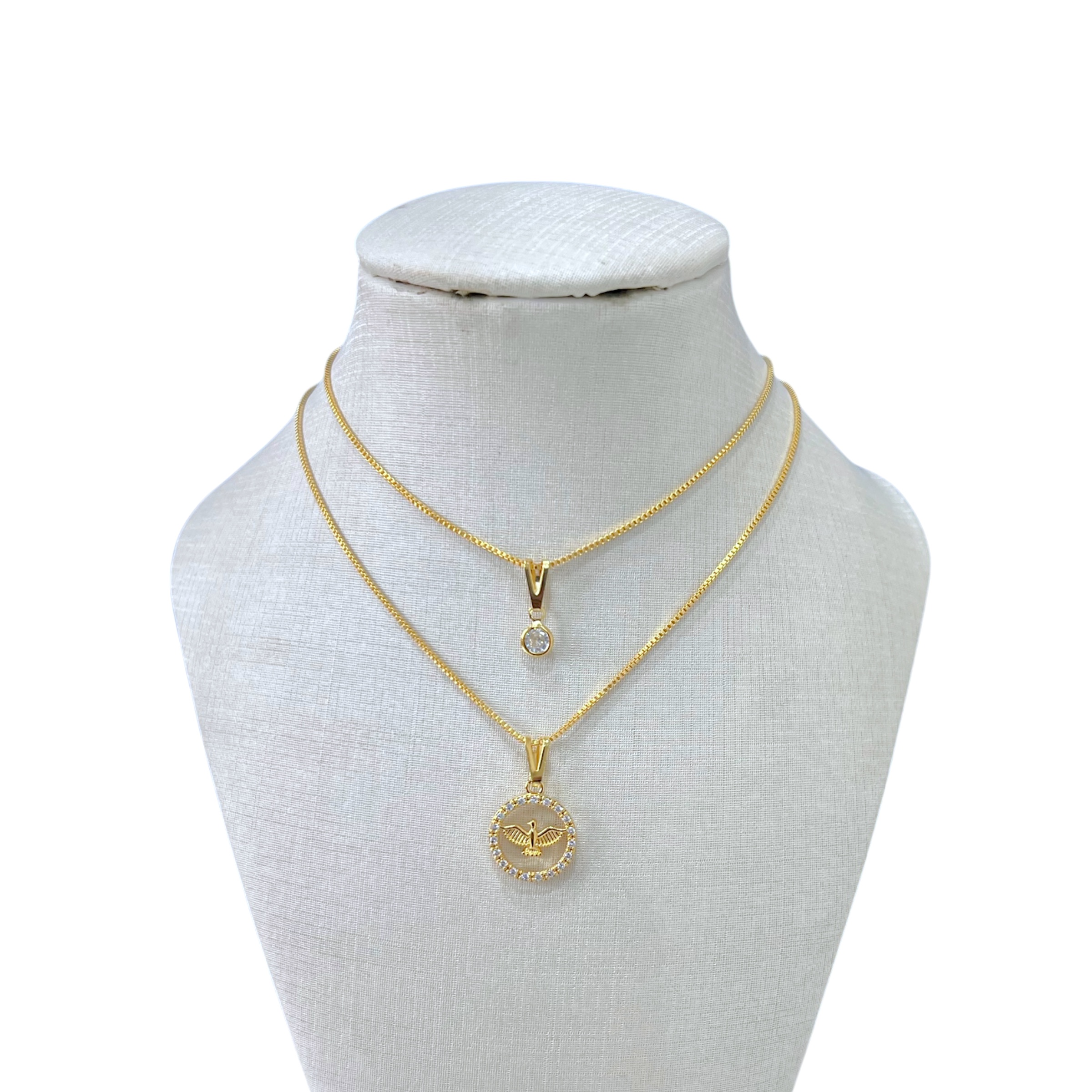Colar Duplo Folheado Ouro 18k Espírito Santo Cravejado