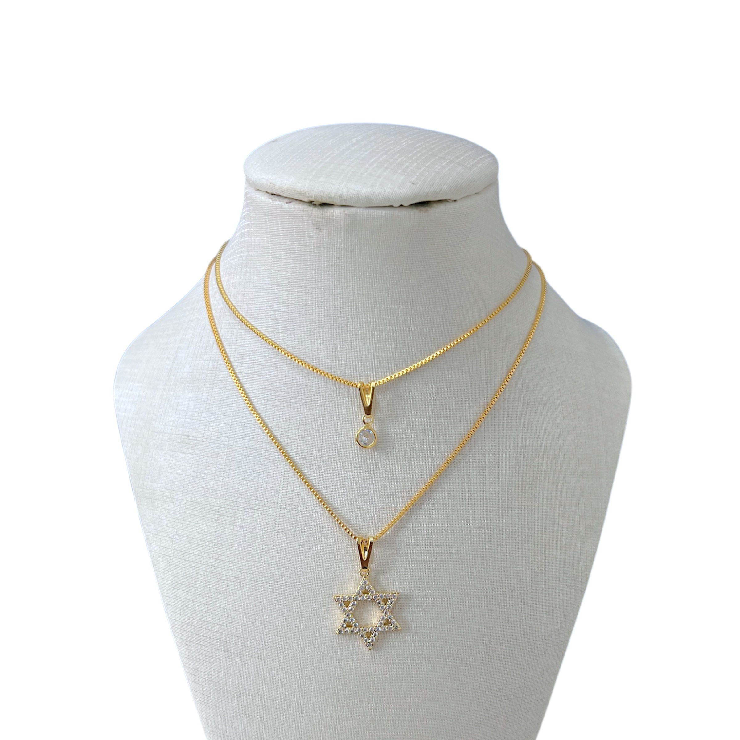Colar Duplo Folheado Ouro 18k Estrela De Davi Cravejada