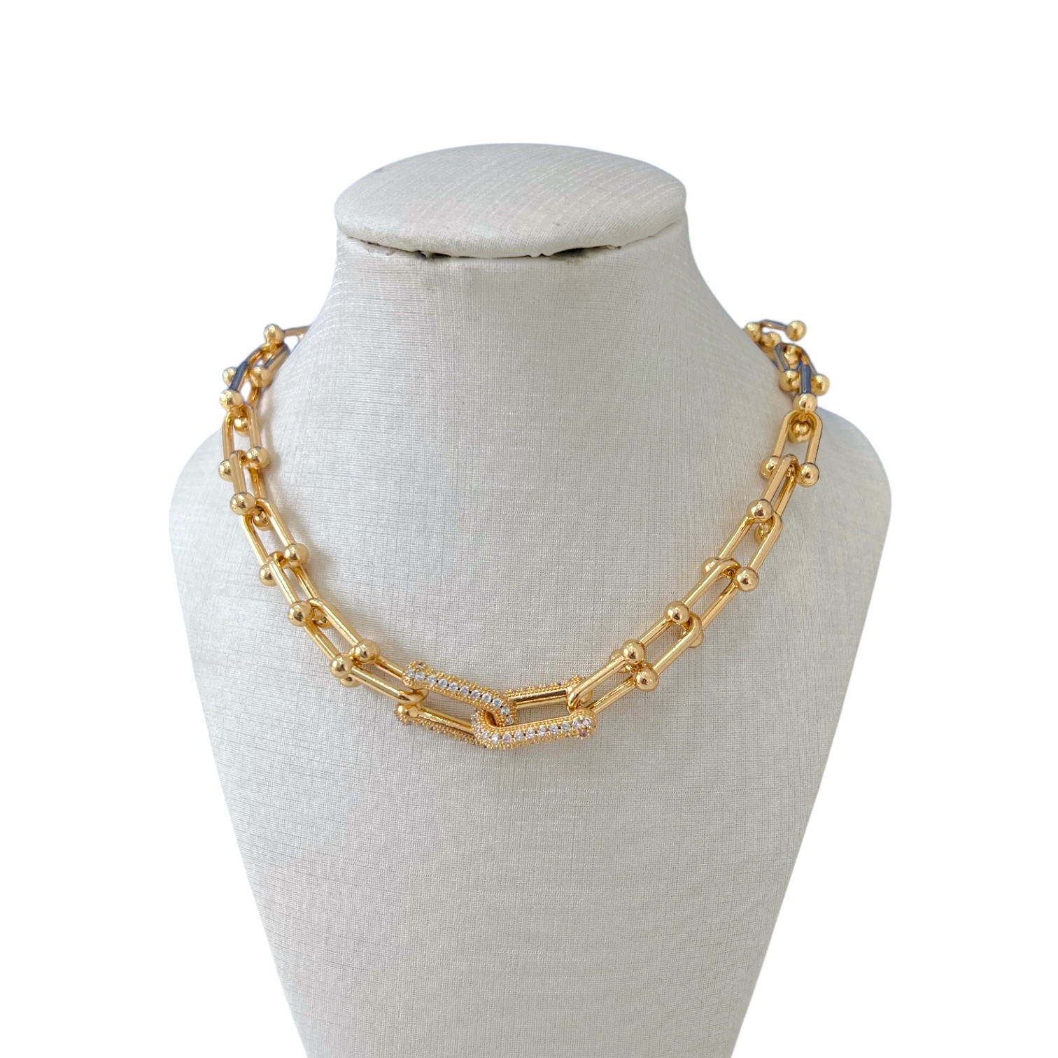 Colar Folheada Ouro 18k e Prata 925 Elos Bolinhas Cravejado