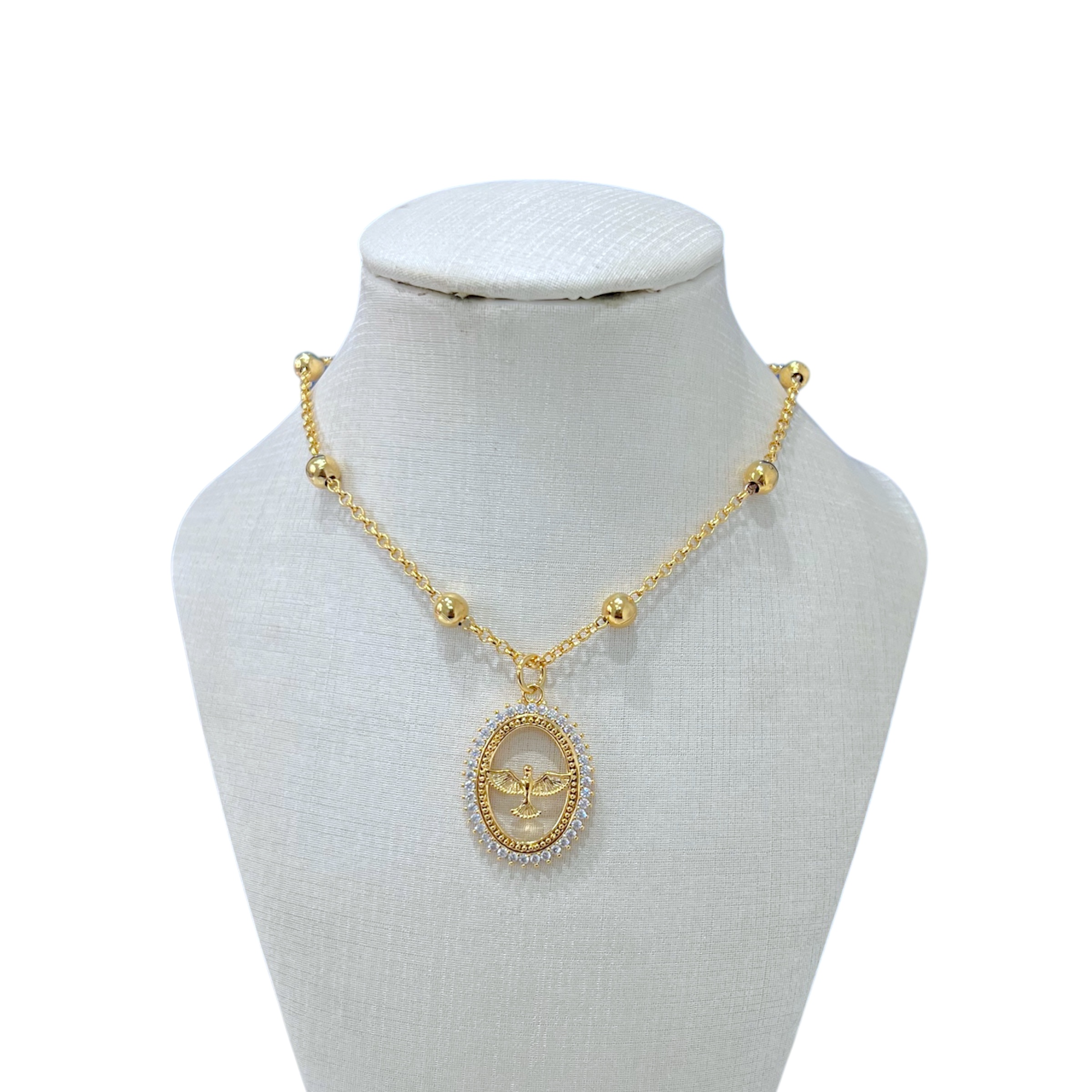 Colar Folheado Ouro 18k Bolinhas Espírito Santo Cravejado