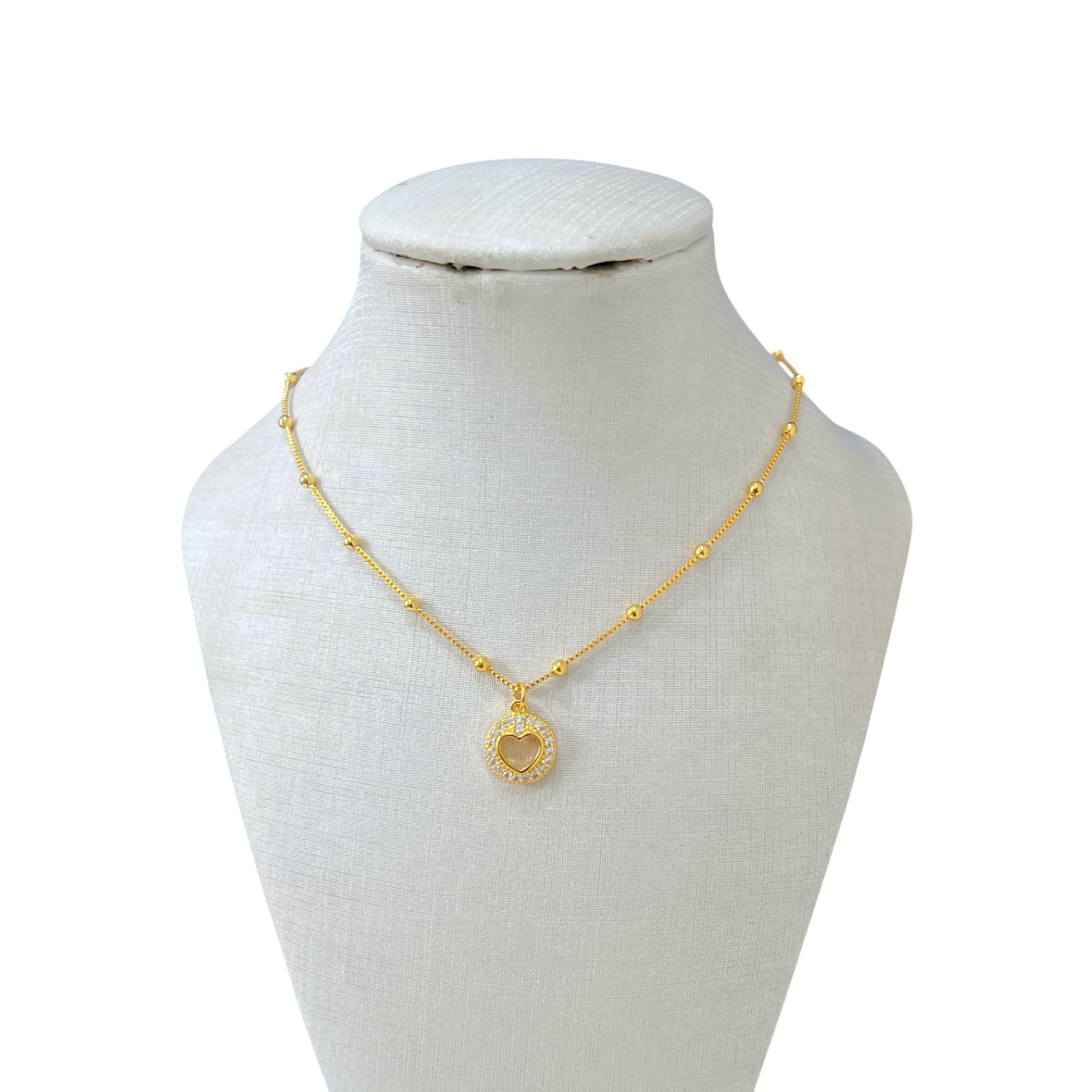 Colar Folheado Ouro 18k Bolinhas Mandala Coração Cravejado