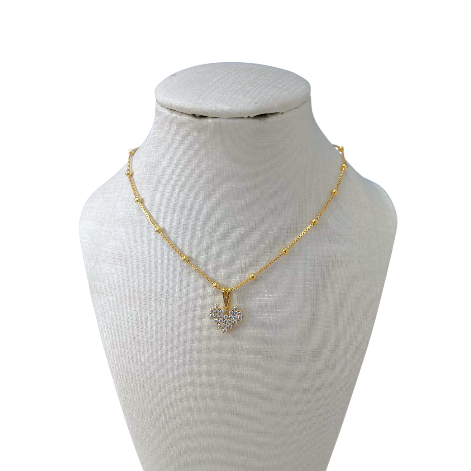 Colar Folheado Ouro 18k e Prata 925 Bolinhas Coração Cravejado