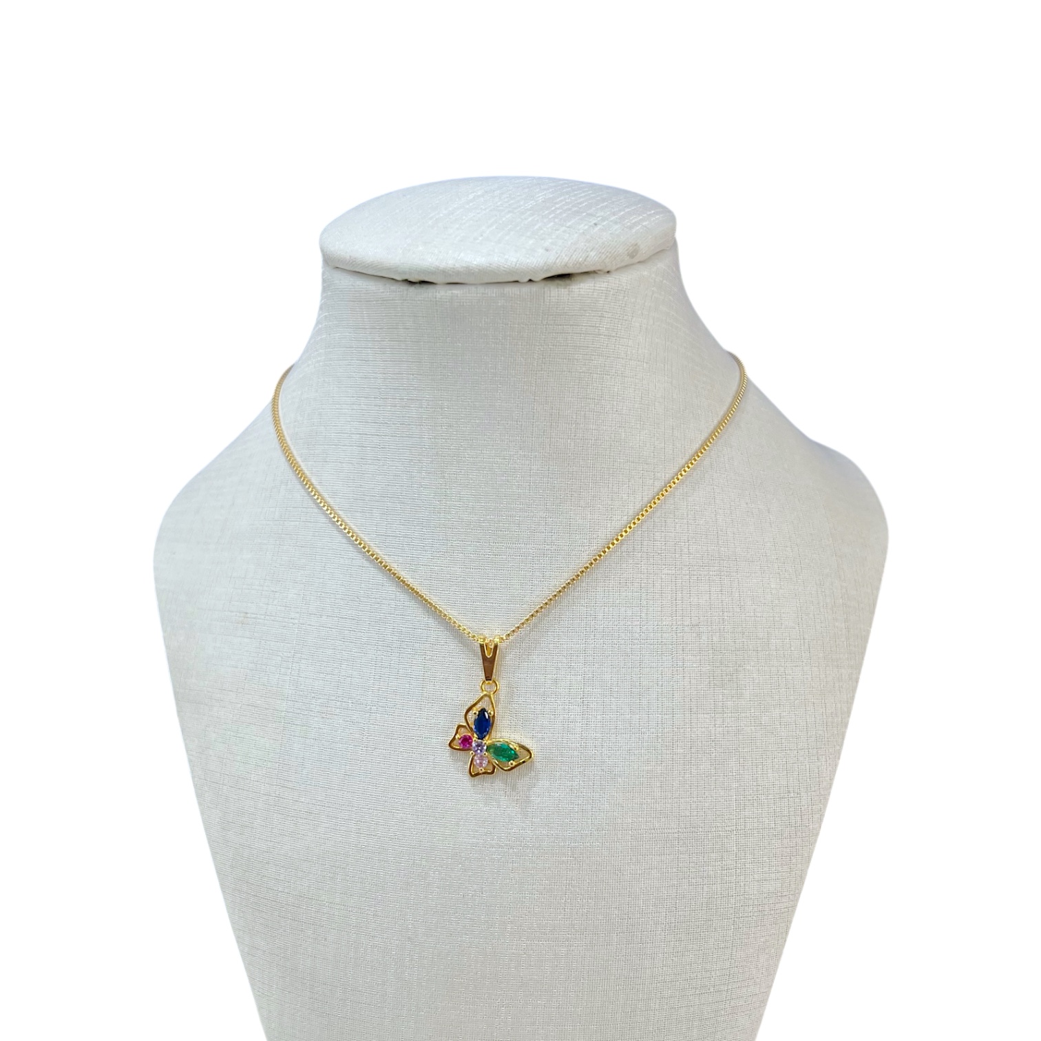 Colar Folheado Ouro 18k e Prata 925 Borboleta Cravejada